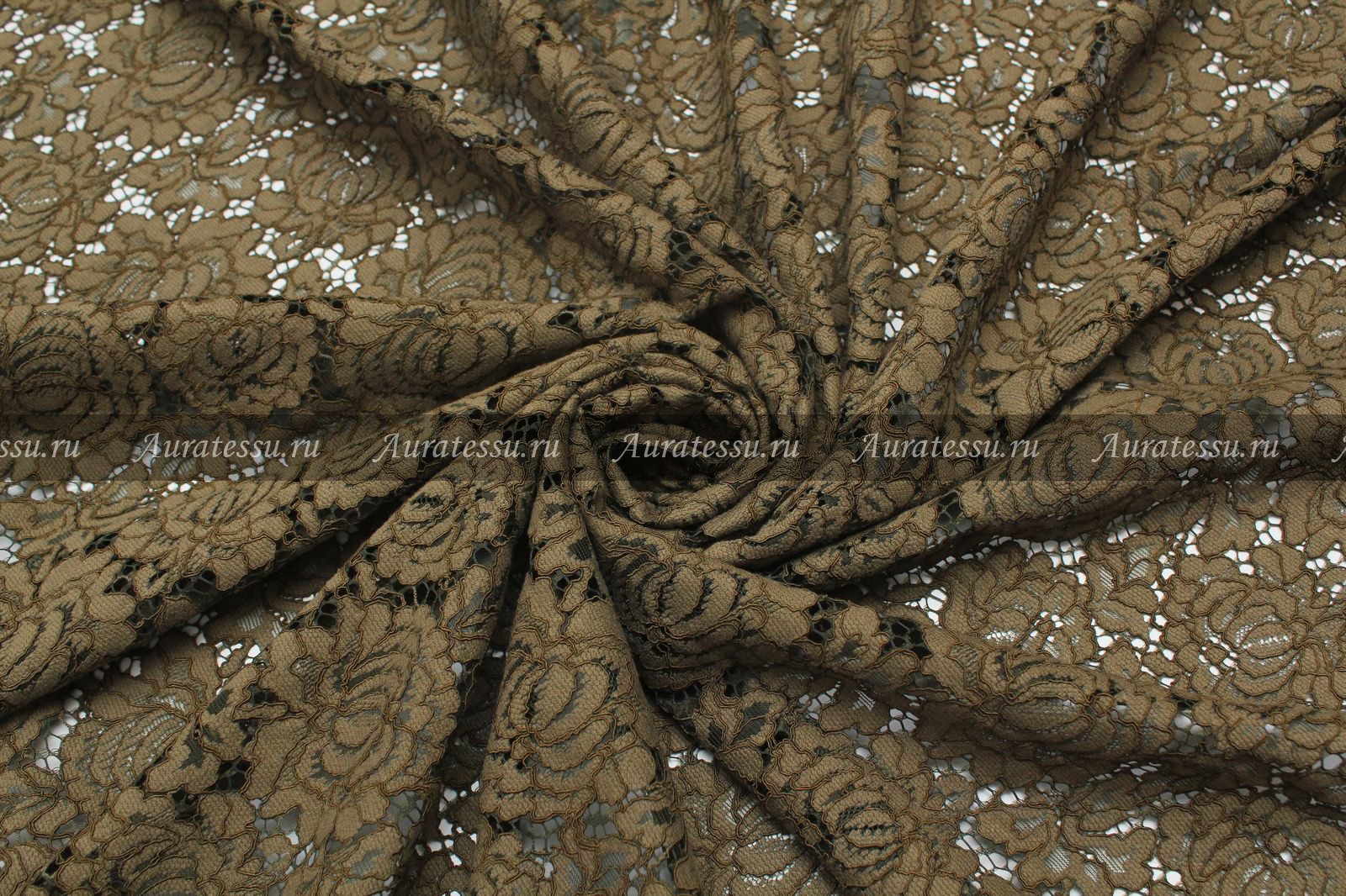 Кружево A McQueen с кордом цветочный рисуток цвета хаки 260г/мп