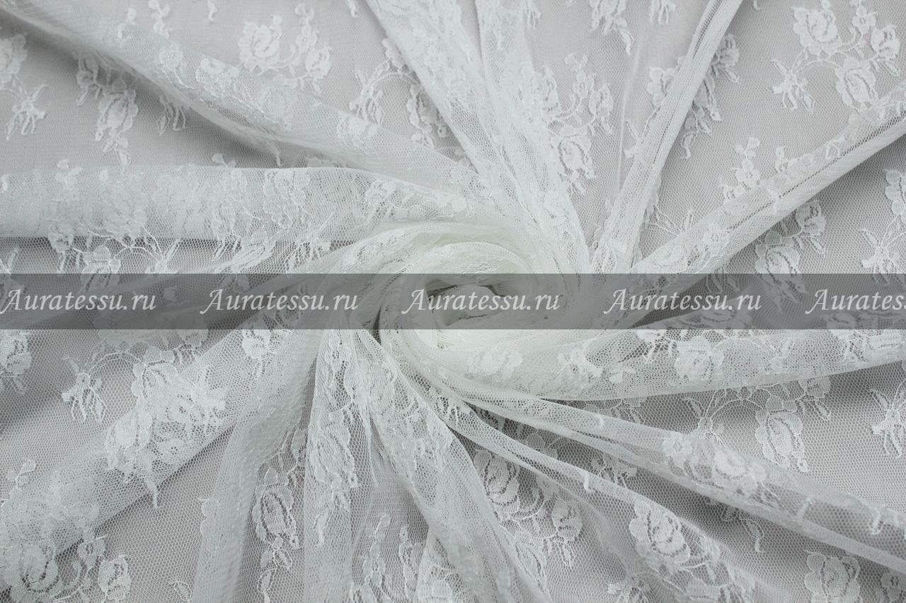 Тонкое и полупрозрачное сетчатое кружевное полотно с не крупным цветочным узором. Цвет гипюра молочно-белый, узор не частый в виде бутоньерок. Полотно отлично драпируется. Подходит для пошива лёгкой нарядной одежды разнообразных силуэтов. Для юбок и платьев требуется подкладка.