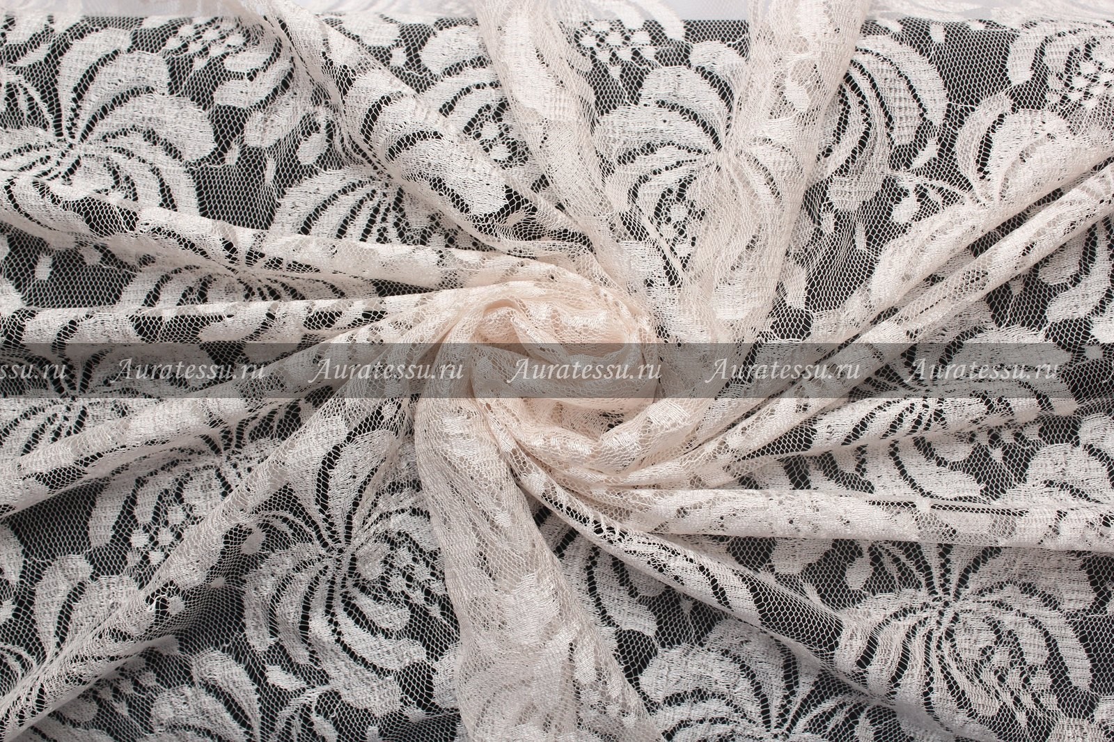 Кружевной гипюр розовато-кремовый с цветочным узором