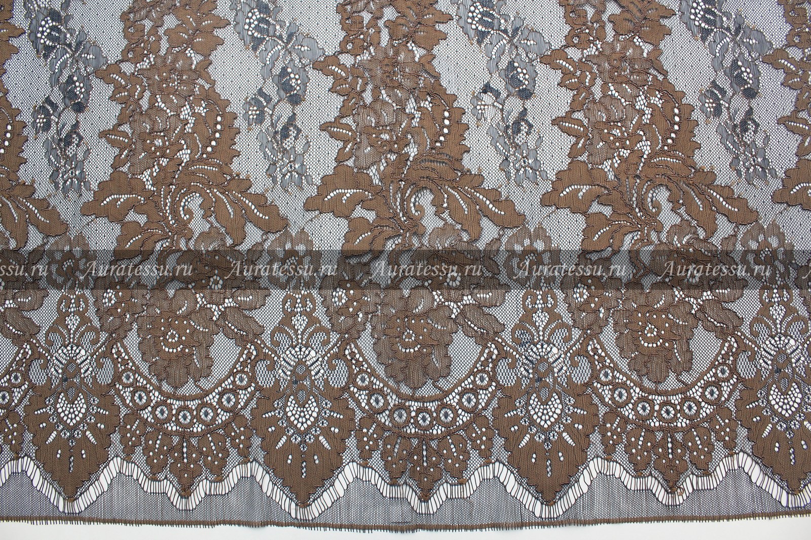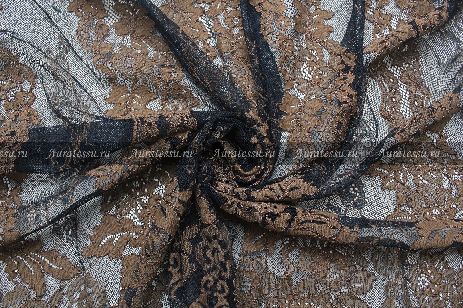 Кружевной кордовый купон тёмно-синий в коричневым узором