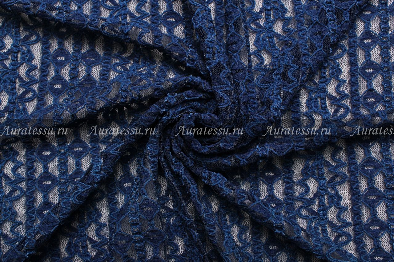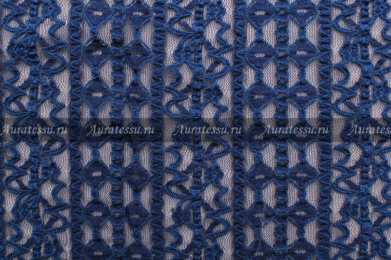 Дополнительная информация:Полупрозрачное кружево сочного тёмно-синего цвета с продольным полосатым узором на сетчатой основе. Узор выпуклый, слегка крешированный (сжатый). По контуру рисунка кружево украшено толстой нитью. Полотно эластичное, пластичное, при растяжении не деформируется. Подходит для пошива лёгкой кружевной одежды разнообразных силуэтов. Рекомендации по уходуКружево, кружево на сетке: Состав: шерсть, вискоза, хлопок, нейлон, ацетат, полиамид, акрил, люрекс, эластан. Рекомендация поставщиков - химчистка. Кружевные полотна с волокнами разных составов опасно стирать из-за разноусадочности нитей. Нити хлопка, льна, вискозы, шелка, шерсти и п/а дают разную усадку и при стирке ткань может съежиться. Поэтому, если в составе одной ткани разные нити, то лучше использовать химчистку. Если полотно одного состава (исключение шерсть), то можно поэкспериментировать на кусочке, оставшемся от кроя. Мы пробовали стирать вискозное кружево (вискоза 100%). Оно становится мягче после первой стирки с небольшой усадкой. Больше никаких изменений не заметили. Если это не пугает, то можно стирать мягким, жидким моющим средством вручную без отжима при температуре до 30°С. Отжим в махровое полотенце. Сушка в горизонтальном расправленном виде изнанкой вверх. Гладить на "шелке" с паром.