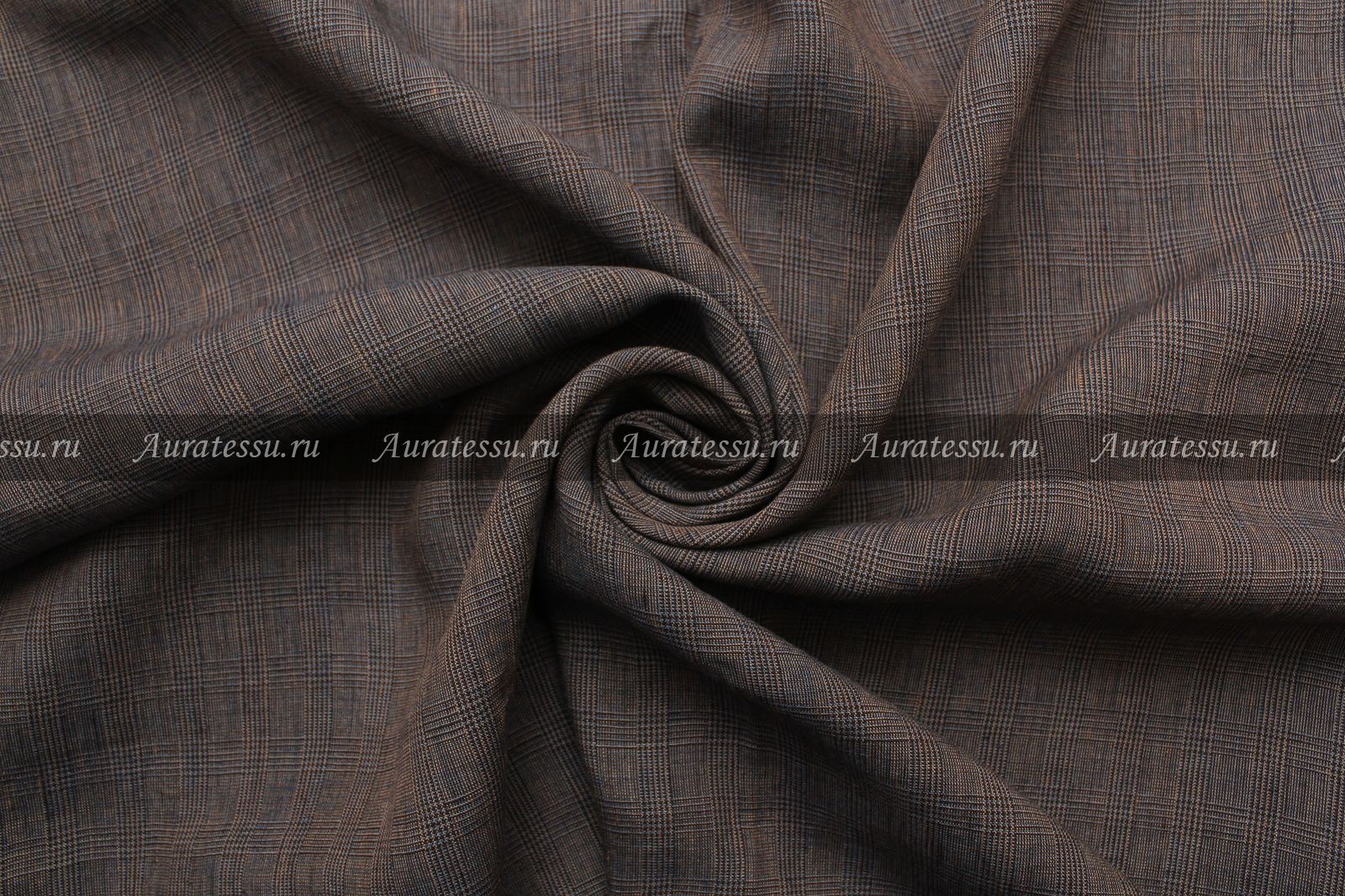 Лён костюмный Canali тёмная коричнево-синяя клетка