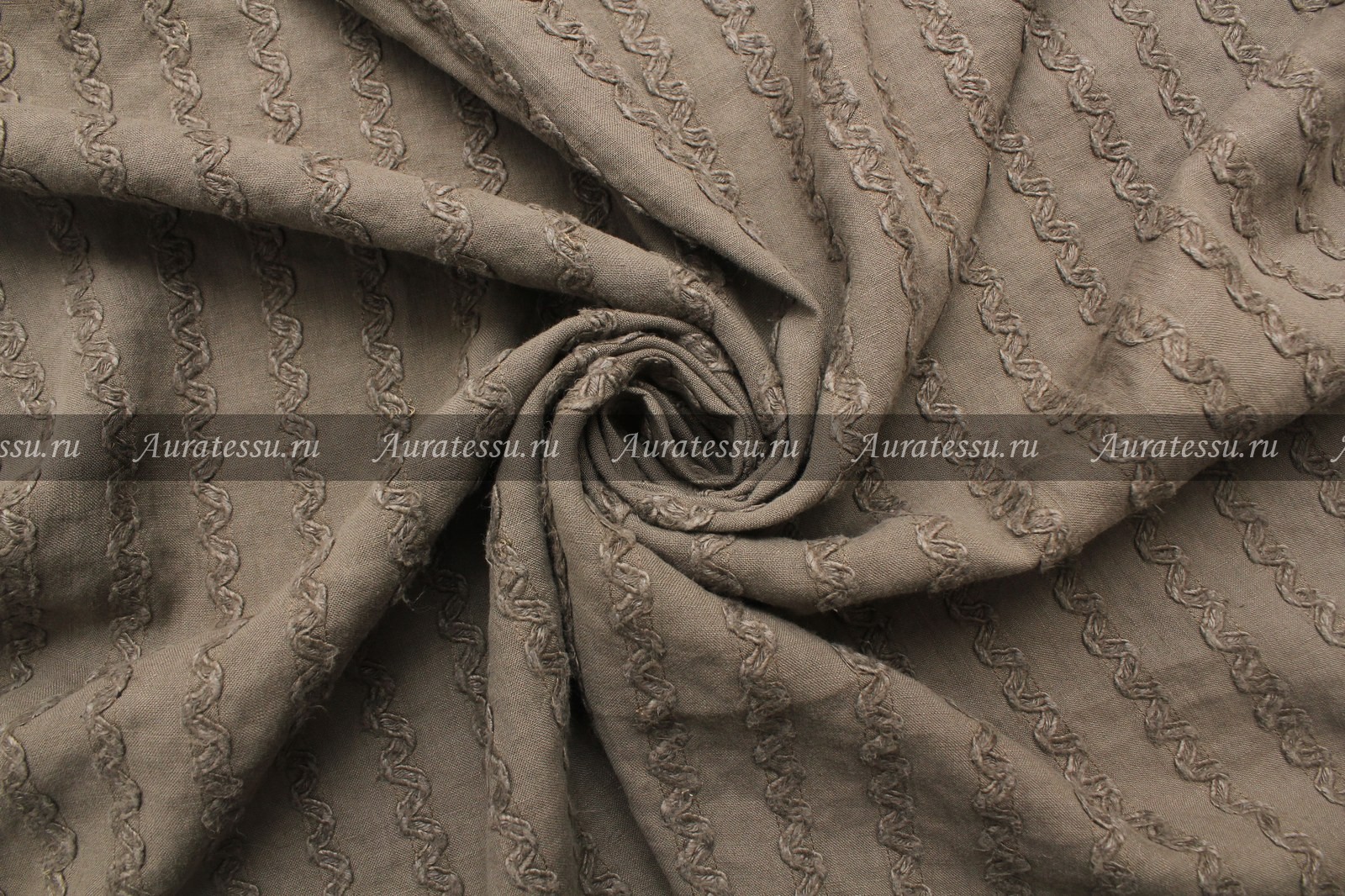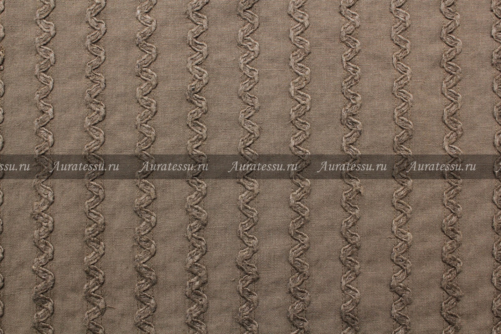 Лён коричневато-оливковый с аппликацией шнуром (вьюнчиком)