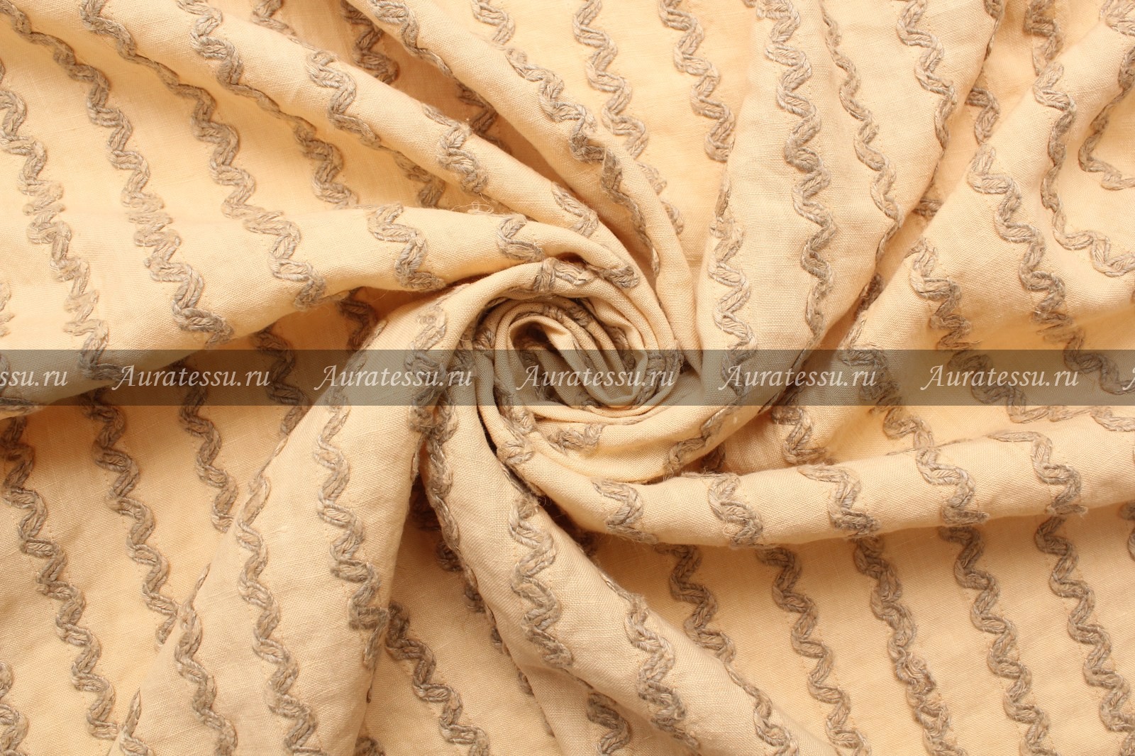Лён жёлто-бежевый с аппликацией шнуром (вьюнчиком)
