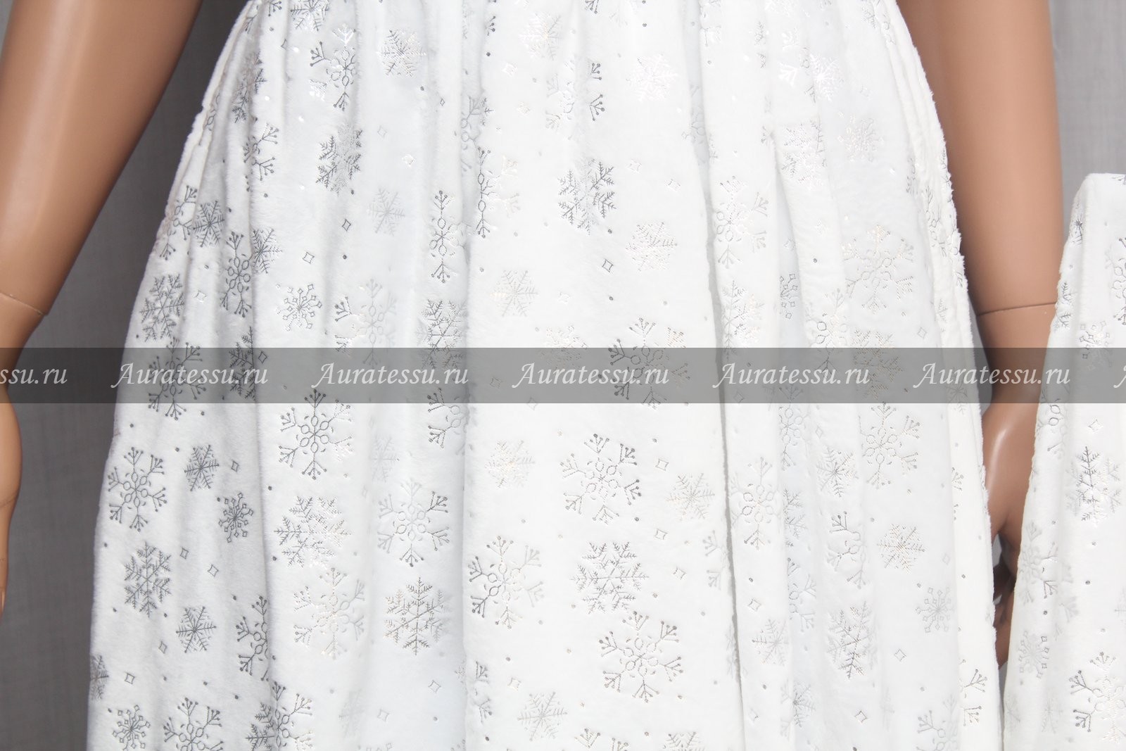 Мех искусственный серебристые снежинки на белом ворсе