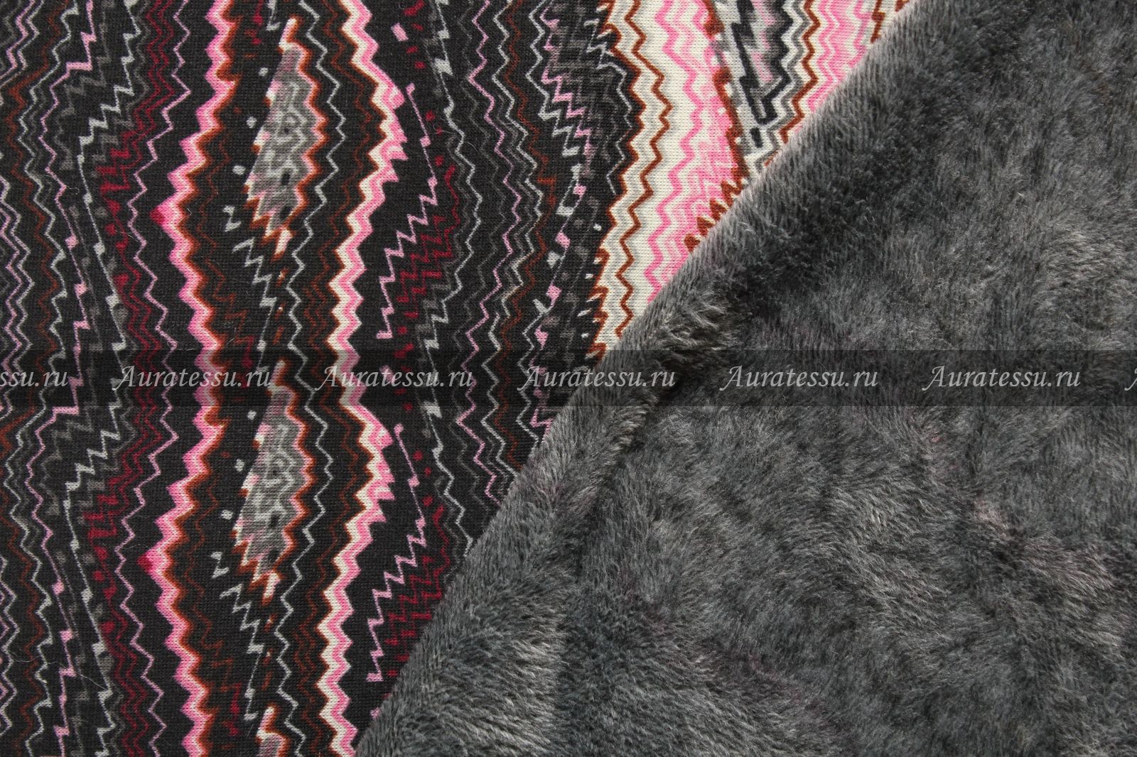 Набивной трикотаж-стрейч на тёмно-сером меху