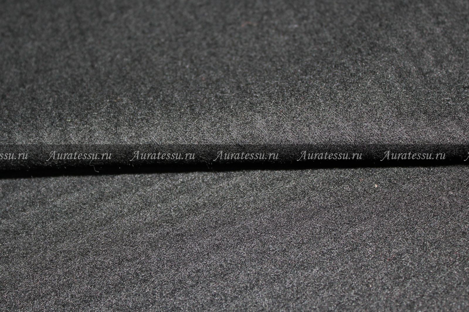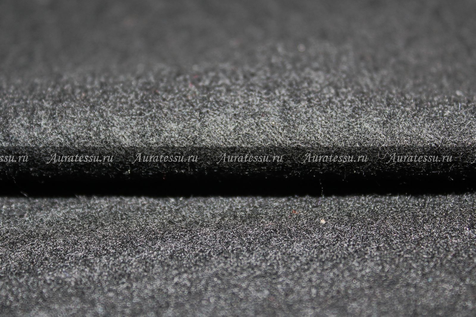 Чёрная пальтовая ткань с неярко выраженным рубчиком, средней плотности. Расстояние между рубчиками 5 мм. Ткань матовая с лёгким ненаправленным начёсом. Переплетение жаккардовое-диагональное. Ткань мягкая, пластичная, бархатистая, очень приятная. Подходит для изготовления женских пальто, как прямого, так и расклёшенного силуэта. Ткань мало мнется и хорошо драпируется, подходит для изделий под пояс.