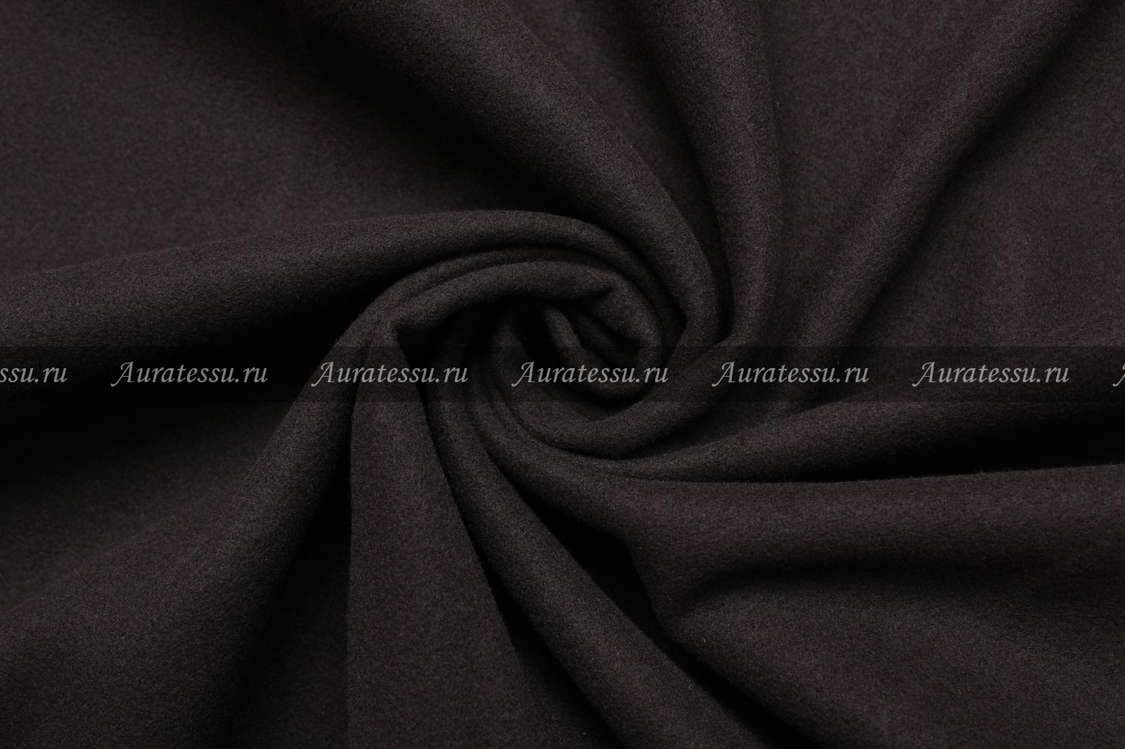 Чёрная плотная пальтовая не ворсовая ткань. Цвет глубокий насыщенный. Высококачественное синтетическое волокно, используемое для изготовления ткани соткано таким образом, что полотно напоминает фетр. На поверхности ткани переплетений нитей не видно, на ощупь она бархатистая, как сукно. Ткань средней плотности, держащая форму, не мнётся, подходит как для мужских, так и для женских пальто. В изделии можно отстрачивать детали и делать складки.