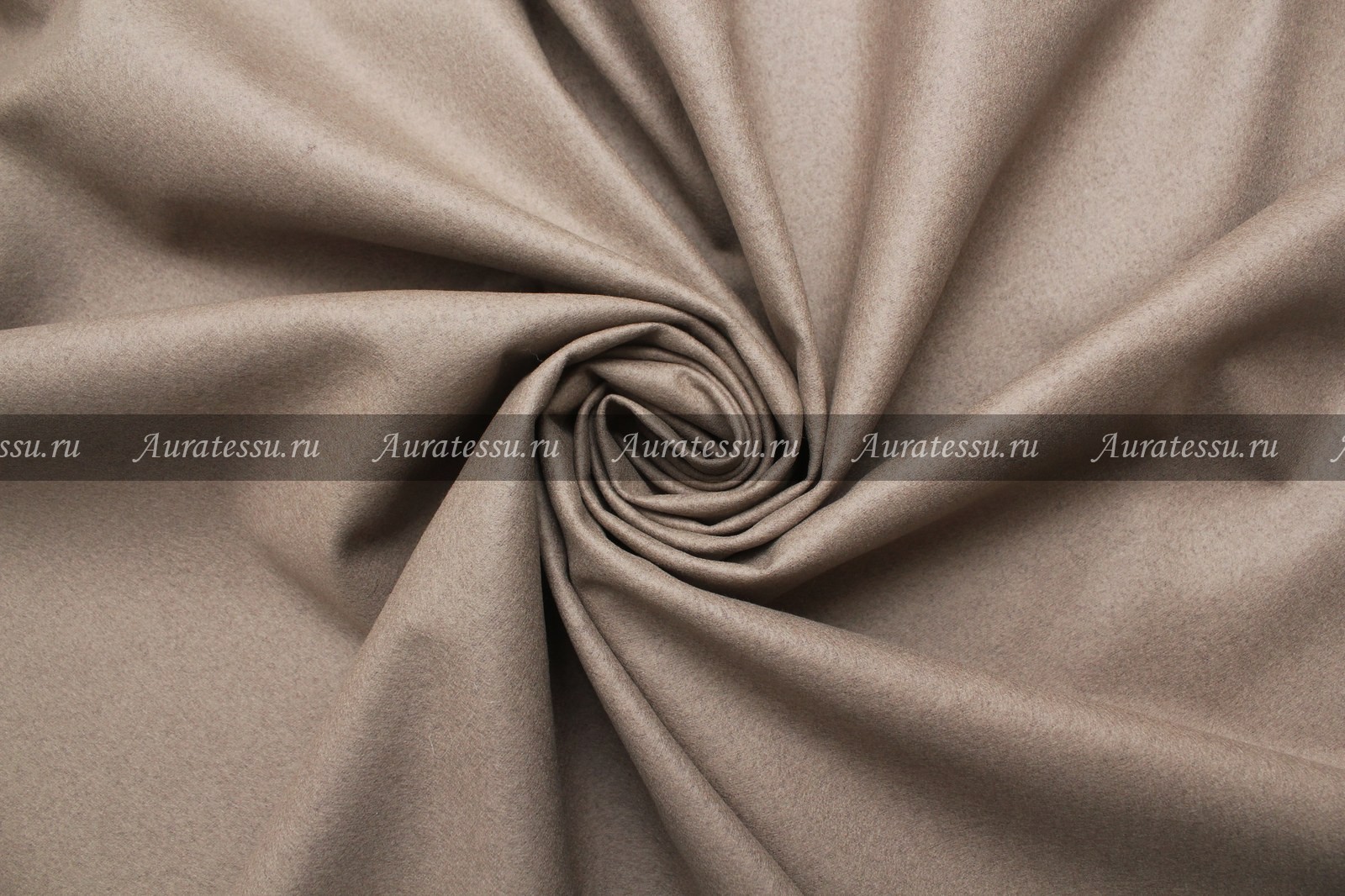 Средней плотности, валенная пальтовая ткань (фетр) тёмно-бежевого цвета.  Полотно двухстороннее, шлифованное, без видимого переплетения нитей, слегка вспушённое  (без ворса). Срезы можно не обрабатывать, не осыпаются.  Полотно держит форму. Подходит для пошива верхней и костюмной одежды, для отделки и различных дизайнерских решений (аппликация, тюнинг).