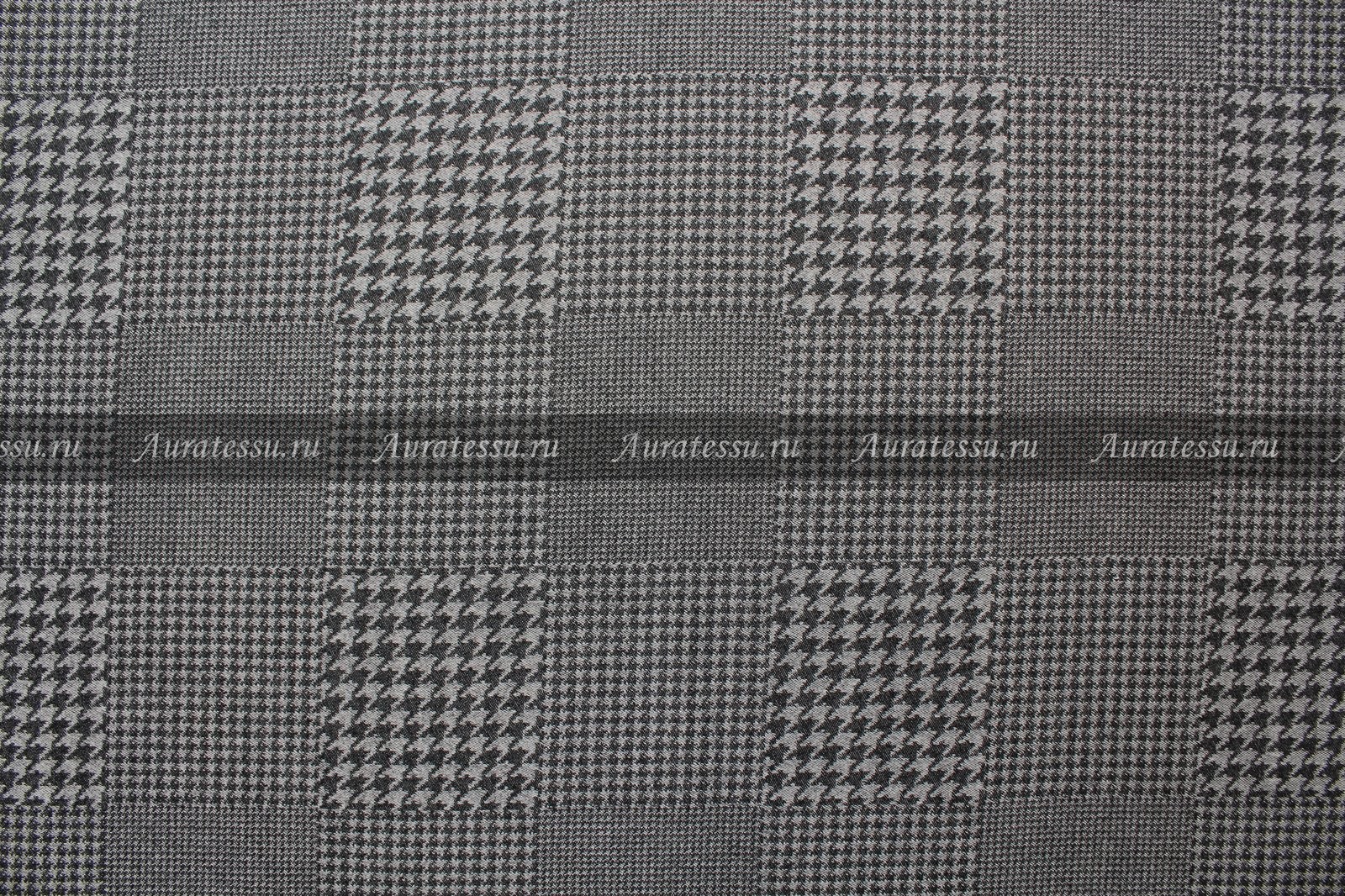 Ткань пальтовая на неопрене чёрно-серая гусиная лапка