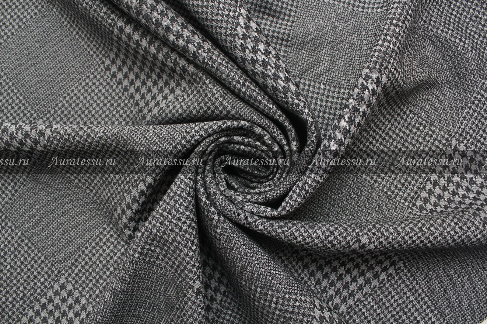 - Ткань пальтовая на неопрене чёрно-серая гусиная лапка