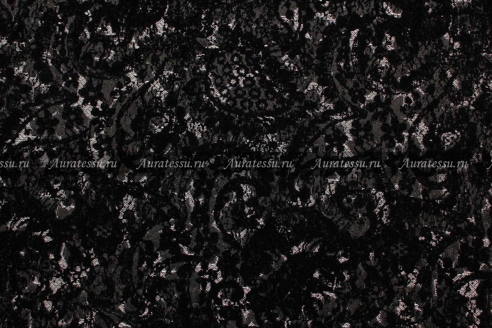 Плотный костюмно-пальтовый жаккард с флокированным чёрным напылением. Основа ткани жаккардовое полотно с мелким цветочным серебристо-серым рисунком по чёрному фону. По лицевой стороне, поверх цветочного узора чёрным бархатистым флоком нанесено напыление. Рисунок напыления цветочно-растительный. При накладывании двух орнаментов друг на друга рисунок получается замысловатый. Полотно упругое, держит форму. Подходит для пошива пальтовой и костюмной одежды прямых, расклешенных силуэтов.