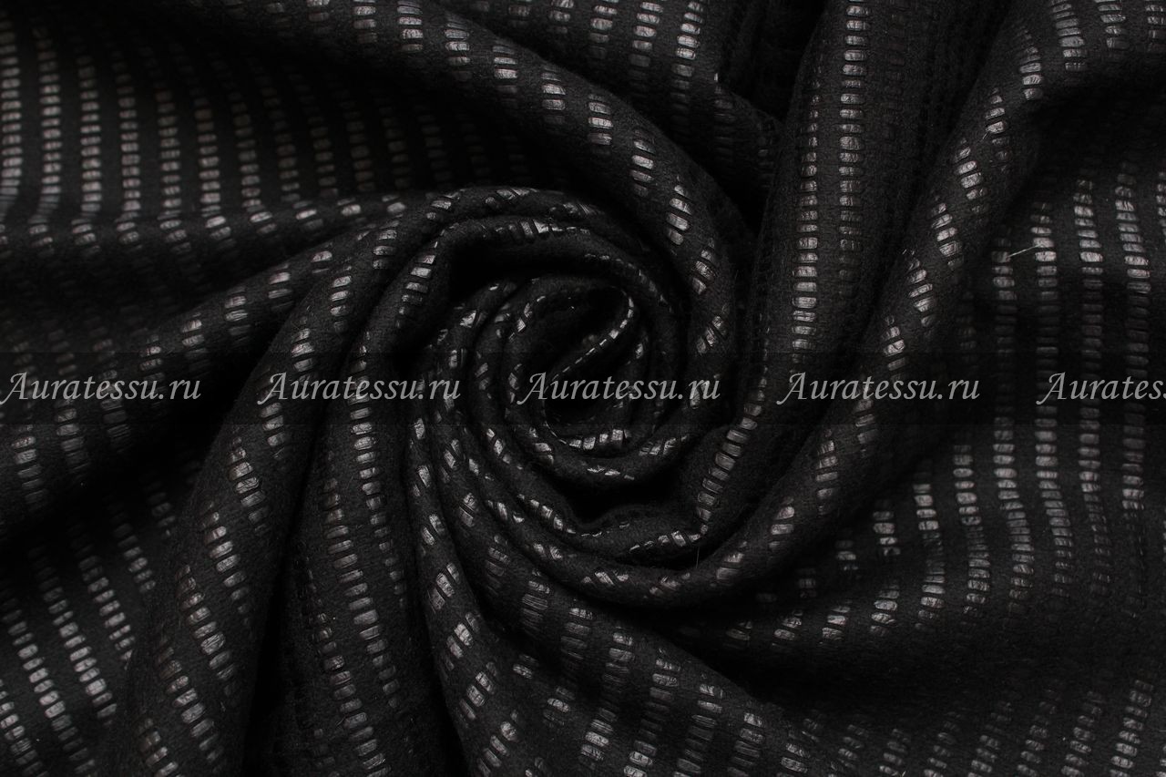 Ткань пальтовая Prada чёрная с полиуритановым рисунком