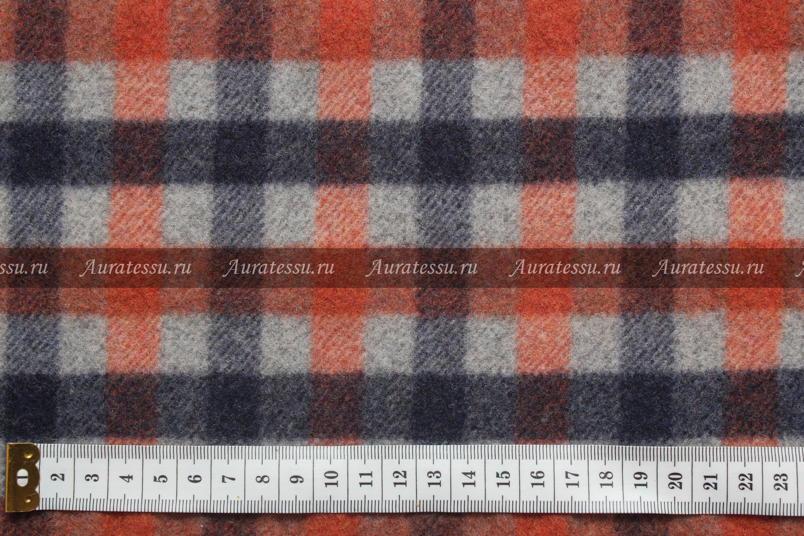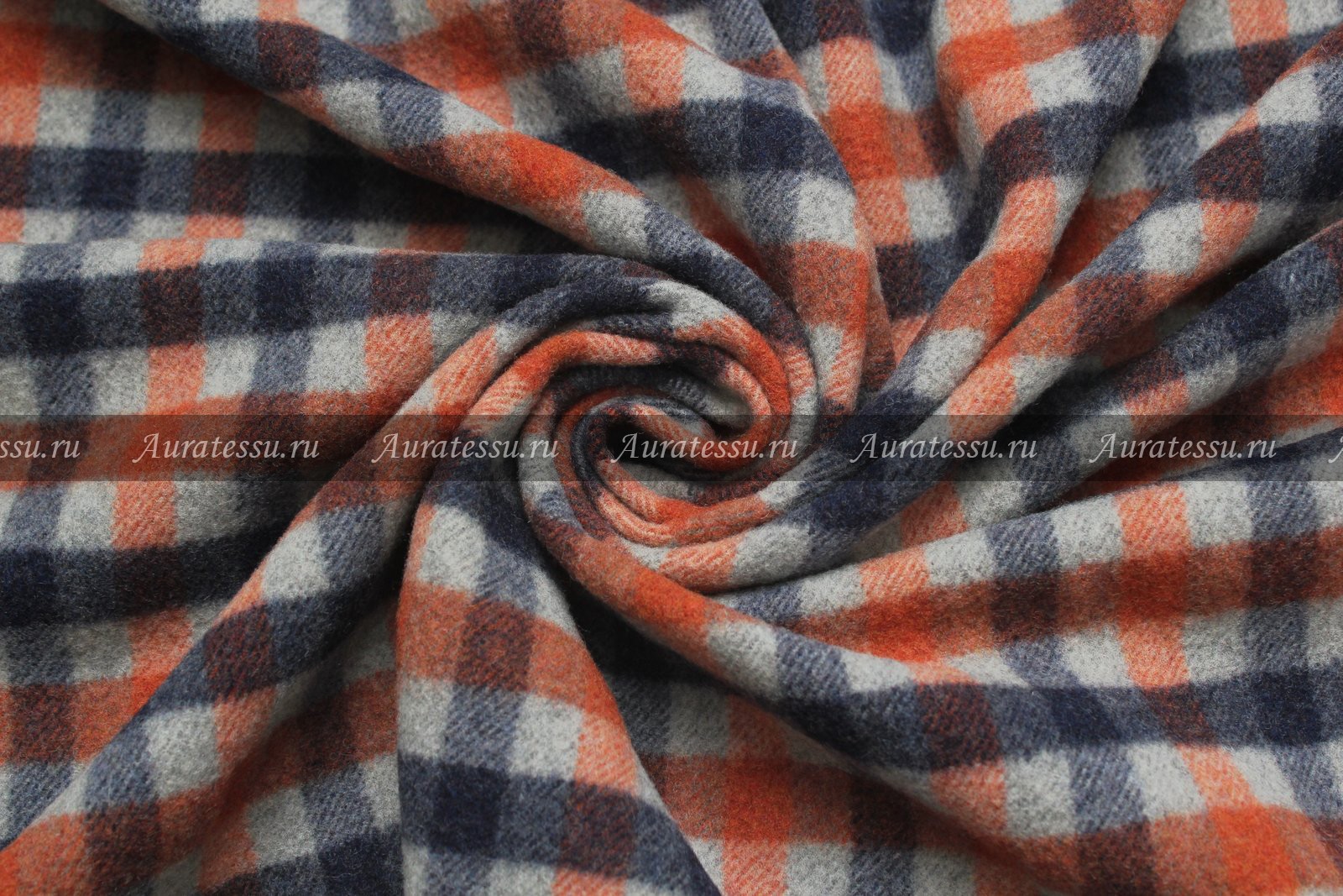 Ткань пальтовая крупная клетка сине-серо-оранжевая