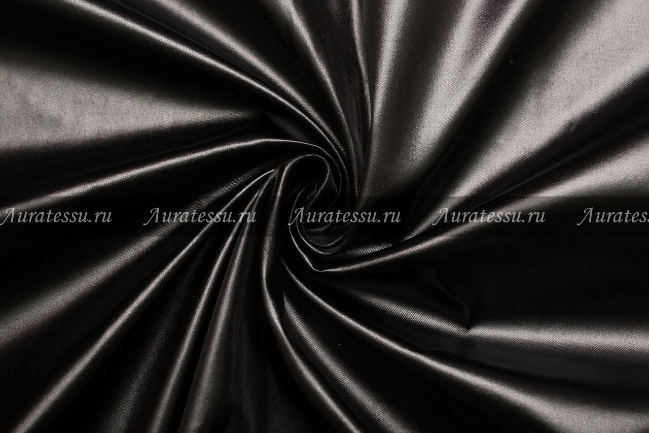 Плотная глянцевая двухслойная ткань чёрного цвета. Два полотна крепко сдублированы между собой. Верхний слой (как лаковый) диагонального переплетения, упругий, держит форму. Нижний слой - мягкий трикотаж с ворсистой изнанкой. Полотно с лёгким водоотталкивающим эффектом, подходит для пошива курточной и спортивной пальтовой одежды.