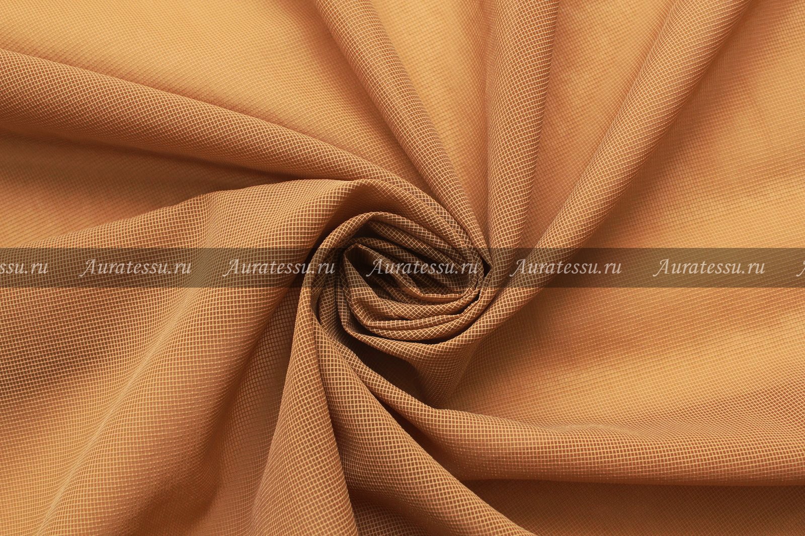 Дополнительная информация:Тонкая плащёво-курточная ткань в виде сетки на органзе. Ткань коричневато-песочного цвета,, фактурная на ощупь, полупрозрачная, слегка крешированая. Полотно держит форму. Желательно избегать утюжки, т.к. ткань сжимается под утюгом по креш эффекту (увеличивается продольная "мятость" ткани). Обладает лёгким водоотталкивающим эффектом. Подходит для пошива верхней лёгкой одежды ( ветровки). Рекомендации по уходуПлащевые ткани: За такой тканью нужно ухаживать очень бережно. Предпочтительна ручная стирка при температуре воды до 30°С, с жидким мылом или обыкновенным шампунем. Храните и сушите такую вещь в расправленном виде. Гладить можно, но при температуре до 110°С и только со стороны подкладки или через плотную ткань х/б. Такие вещи нельзя стирать с порошком, использовать машинную и химическую стирку.