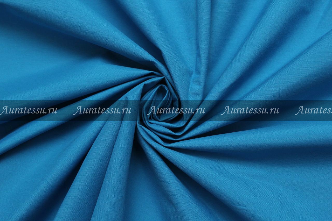 Ткань красивого яркого сине-голубого цвета с водонепроницаемым покрытием. Полотно полотняного переплетения (более выделена фактурой поперечная нить) средней плотности, матовое, подходит для пошива плащёво-курточного ассортимента.