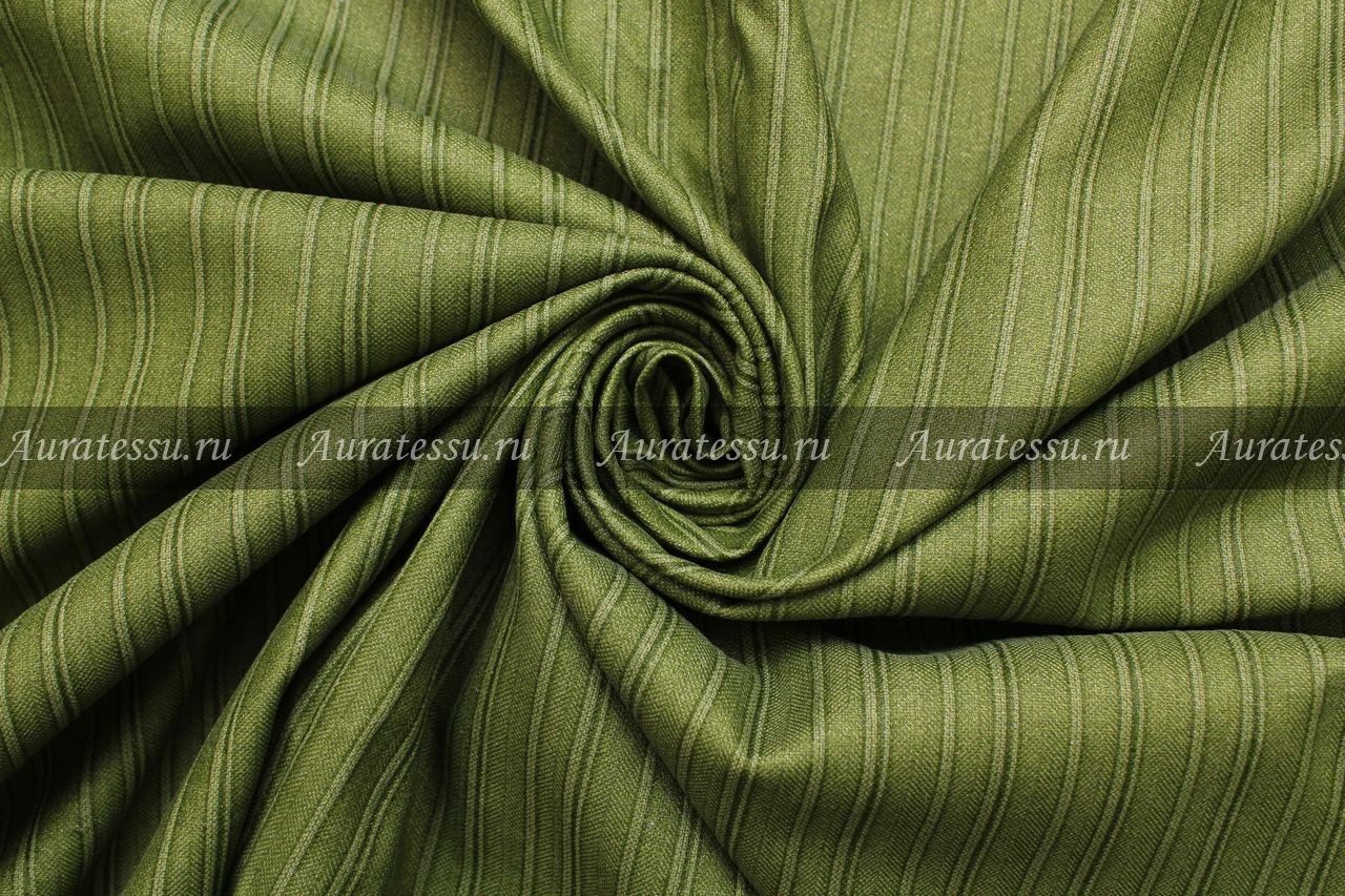 Плотная хлопковая ткань с жаккардовым рисунком в продольную полоску. Само полотно белого цвета (изнаночная сторона, по лицу окрашена в травянисто зелёный цвет. Полотно эластичное, обладает водоотталкивающей пропиткой. Жаккардовый полосатый узор достаточно объёмный. Ткань не пластичная, упругая, "стоит колом". Подходит для пошива пальтово-курточной одежды, как утеплённой, так и без утеплителя.
