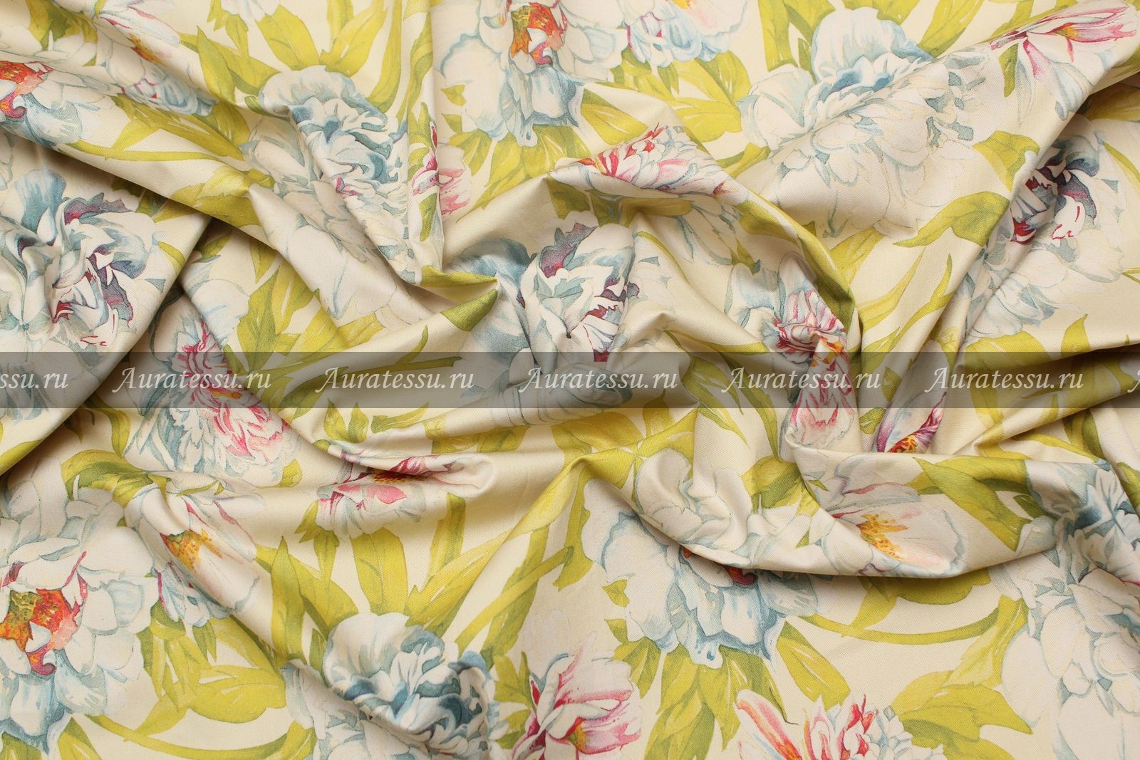 Хлопок плащёво-курточный с водоотталкивающей пропиткой с цветочным узором 240 г/мп