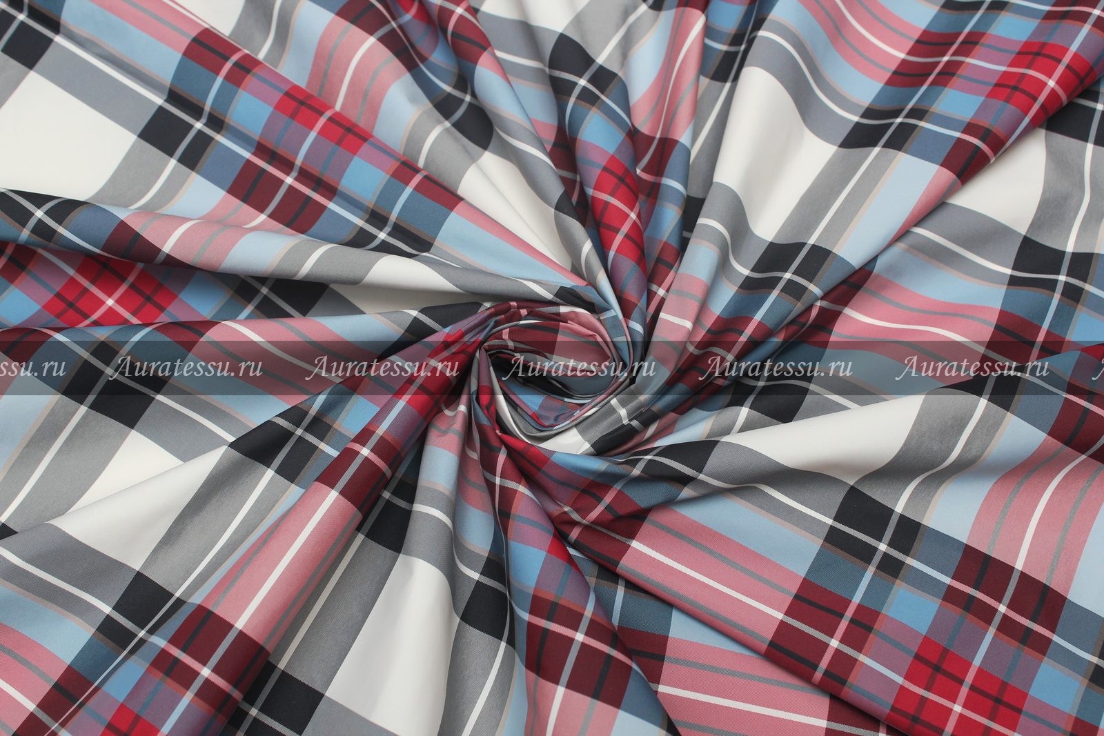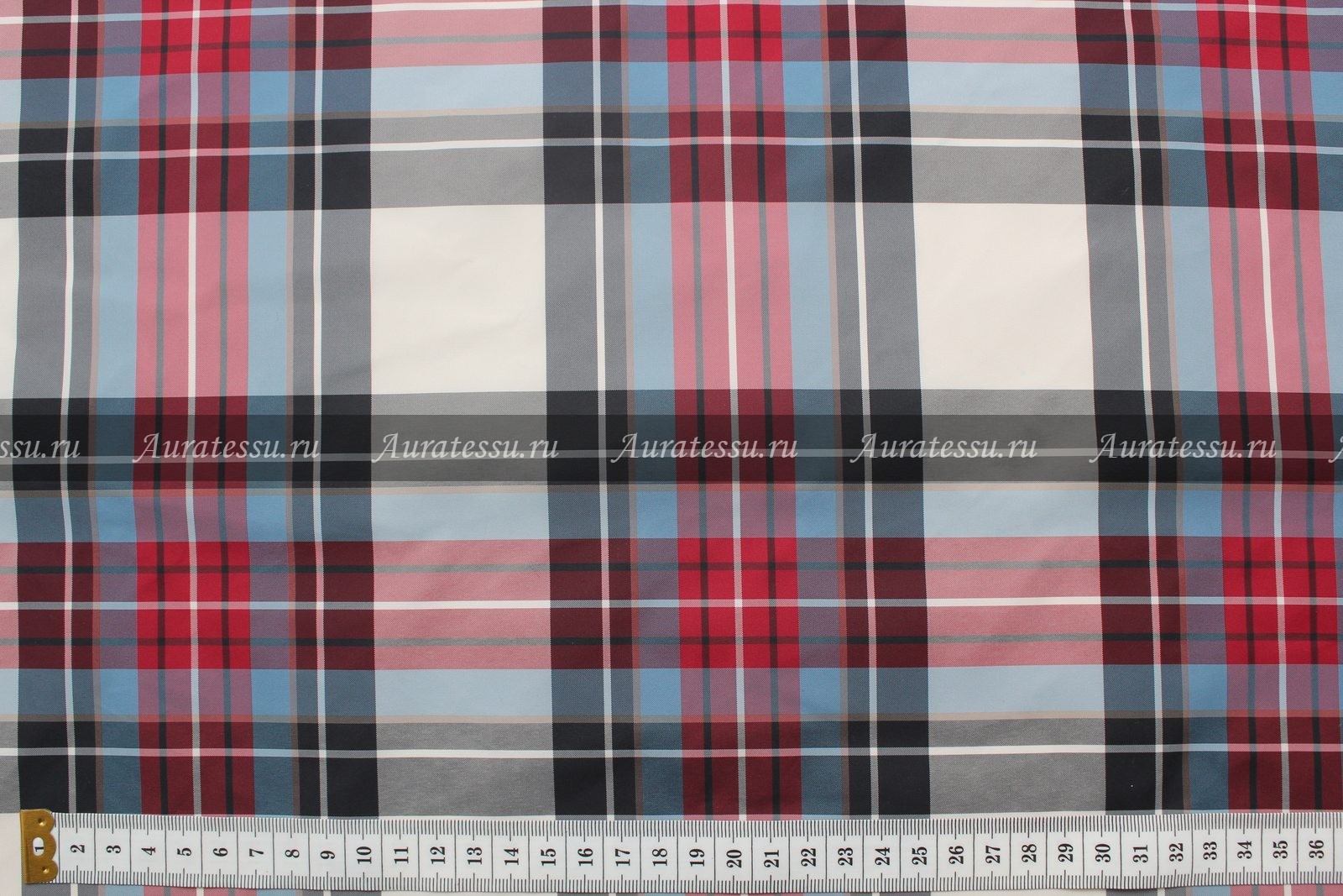 Ткань плащёво-курточная водоотталкивающая голубовато-бордовая клетка 120 г/мп