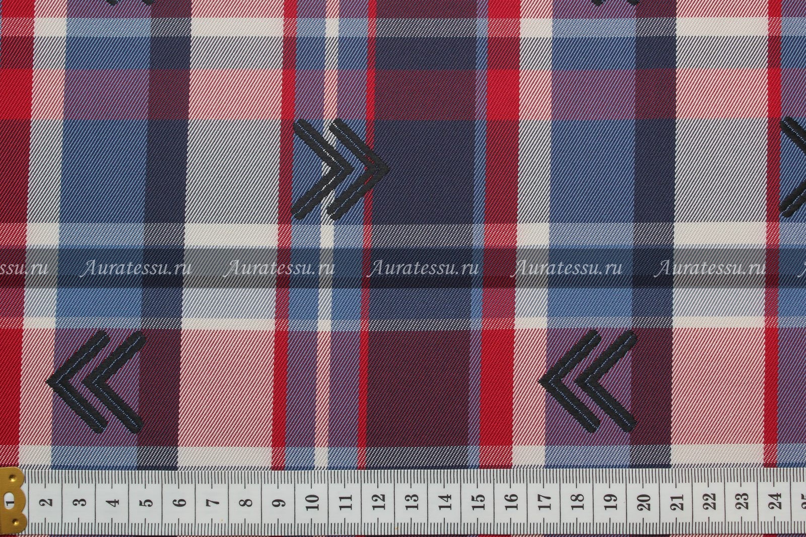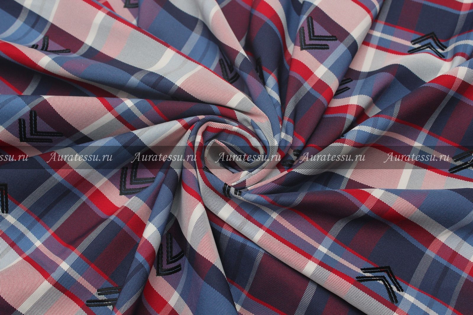 Ткань плащёво-курточная D&G с водоотталкивающей пропиткой сине-бело-бордовая клетка 500 г/мп