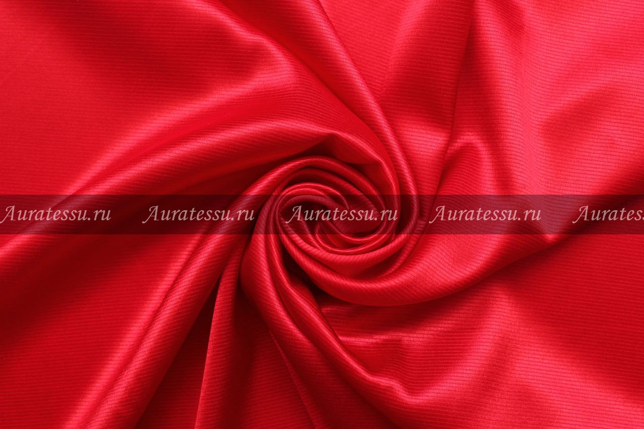 Шелк-атлас-стрейч ярко-красный в поперечный рубчик
