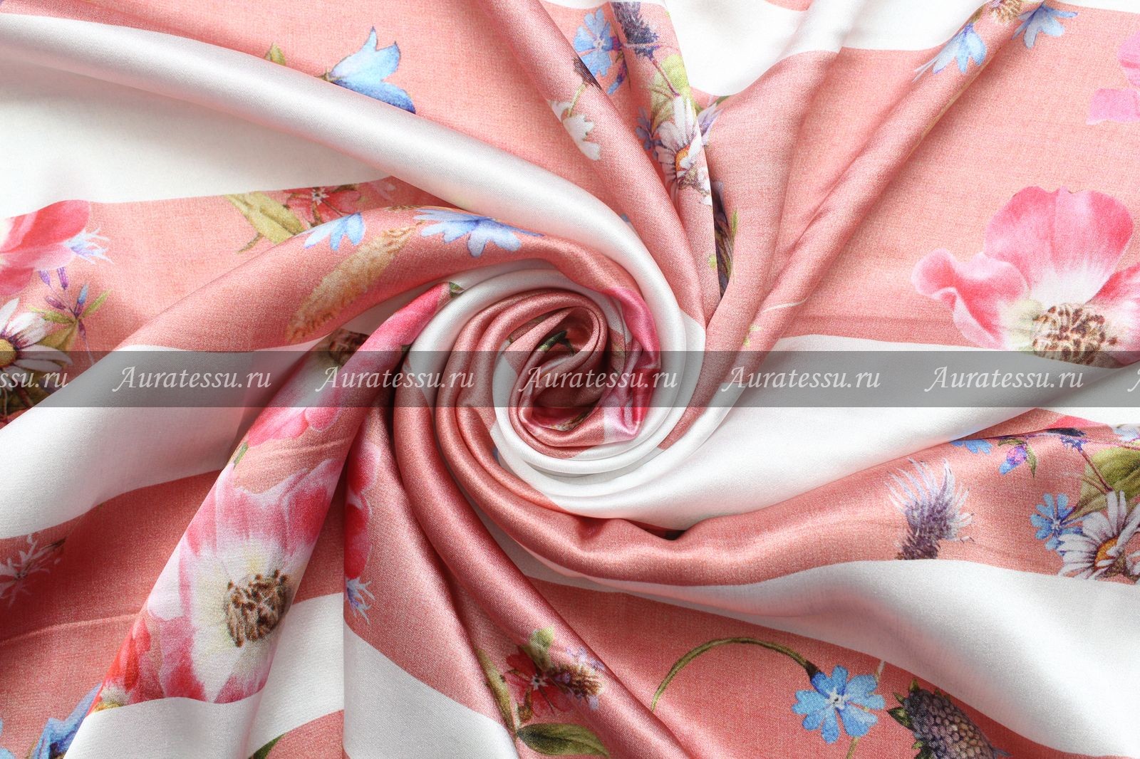 Дополнительная информация:Тонкий и нежный шёлковый атлас с рисунком в белую поперечную полоску разной ширины. Белые полосы шириной 30,4 и 5,71 мм. в ширину постоянно повторяются. Между белыми полосами набивной цветочный узор на розовато-коралловом фоне. Ширина розовых фрагментов постоянная, примерно 11 см. Цветочный рисунок с изображением ромашек, цветков шиповника, колокольчиков, васильков и других полевых цветочков. Полотно нежное и пластичное. Подходит для пошива лёгкой летней одежды как по долевой, так и по уточной нити. Рекомендации по уходуОбщее правило от производителей для всех видов шелка и шелка в смеске с другими видами натуральных волокон- химчистка: даже если в рекомендациях стоит щадящая стирка,- Шелк нельзя отжимать в машинке и тем более в сушильном аппарате. При отжиме шелка аппаратным способом нарушается структура волокон и эффект непредсказуем. Возможна только сушка в расправленном состоянии или легкий отжим в полотенце. Шелк в смеске с другими натуральными или исусственными тканями - однозначно, химчистка, иначе ткань может "скрутить" из-за разноусадочности нитей. !!!!Из всех правил есть исключения. Смотри пункт №10 ПОДРОБНО ПО всем ВИДАМ ШЕЛКА: 1. Рекомендации по уходу: натуральный шелк – атлас, атлас-деворе (100% шёлк). Производители рекомендуют только сухую чистку. В особенности это касается шелкового атласа. Если хотите сохранить изделие в первозданном виде, то только химчистка. Нельзя при утюжке опрыскивать атласный шёлк так как могут остаться следы от воды. Утюжить с изнанки на сухую. Если хотите поэкспериментировать со своей тканью как она реагирует на стирку, то см. рекомендацию № 10 Производители рекомендуют только сухую чистку. Шифоны из натурального шелка можно стирать в режиме "Щадящая стирка" или "Стирка деликатных тканей" - без отжима, не замачивания, если они без нанесенного рельефного рисунка типа флока или с содержанием люрексовой нити. Для шифонов с флоком и люрексом рекомендации по уходу - сухая чистка. Если хотите поэкспериментировать со своей тканью, как она реагирует на стирку, то см. рекомендацию № 10. Наши эксперименты по стирке таких тканей дают в 70% положительный результат. Производители рекомендуют только сухую чистку. Если полотно без различного рода напыления и люрекса, то возможна стирка. Если хотите поэкспериментировать со своей тканью как она реагирует на стирку, то см. рекомендацию № 10. Для сложно обработанных шёлковых тканей, только сухая чистка. Производители рекомендуют только сухую чистку, так как после стирки ткань потеряет первоначальный лоск, перестанет держать форму. Рекомендации производителей - сухая чистка. Если хотите сохранить изделие в первозданном виде - только химчистка. Нельзя при утюжке опрыскивать водой, могут остаться пятна. Гладить с изнанки на сухую. Если хотите поэкспериментировать со своей тканью, то как она реагирует на стирку, то см. рекомендацию № 10 Рекомендации производителей - сухая чистка. После стирки напыление может деформироваться или осыпаться, люрекс- поблекнуть. Рекомендации всех Европейских производителей шелка, особенно с рисунком или вышивкой - химчистка. Шелковая тафта с вышивкой очень сложная в уходе, потому что как правило - вышивка производится вискозными или синтетическими нитями,а это значит , что при стирке они могут дать разную уса