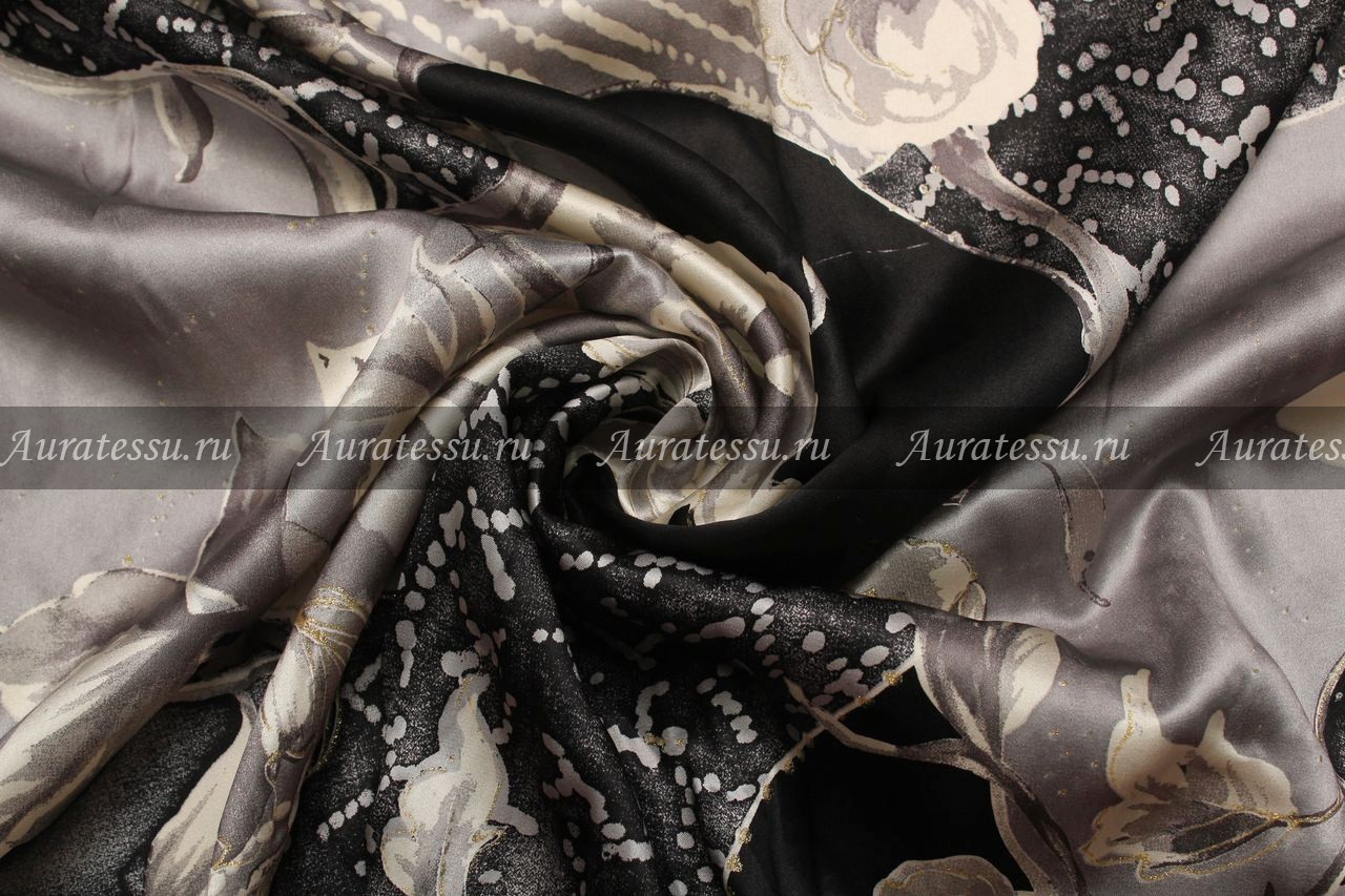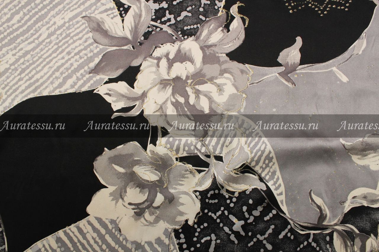 - Шелк-атлас Sonia Fortuna, бело-серый рисунок с золотом на черном