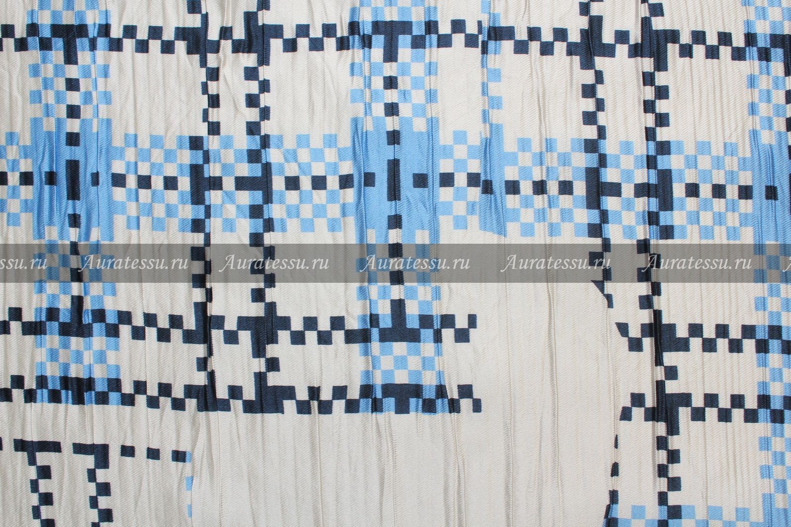 Купон шёлк сатин креш Prada «выкройка платья» тёмно-синие кубики на белом