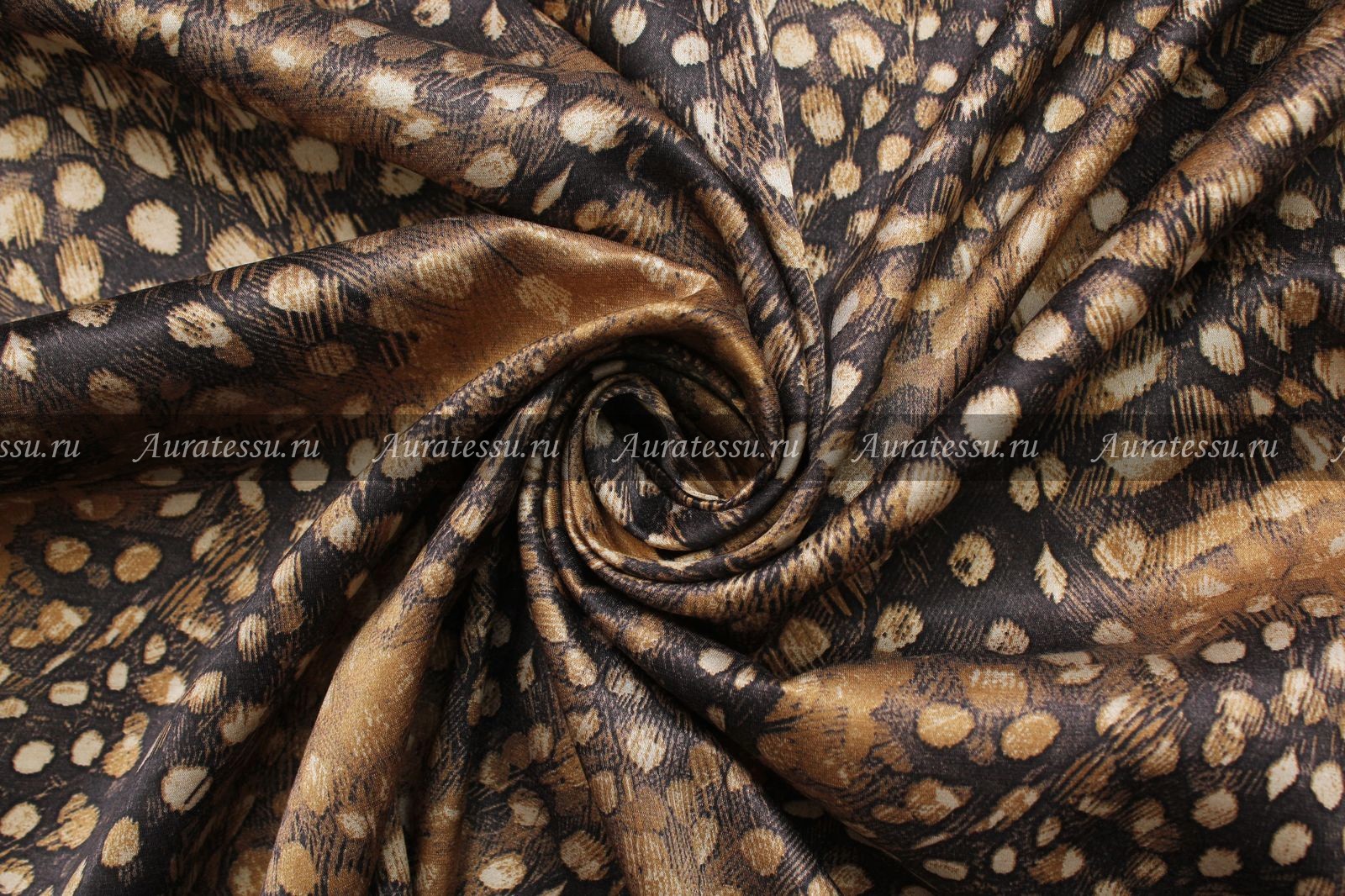 Дополнительная информация:Шёлковый атлас с абстрактным рисунком в виде "рябых перьев". Узор выполнен в песочных, кремовых и темно-коричневых (почти черных) тонах. Полотно гладкое, струящееся, средней шелковой плотности, диагонального переплетения. Подходит для шитья платьев, блуз. Рекомендации по уходуОбщее правило от производителей для всех видов шелка и шелка в смеске с другими видами натуральных волокон- химчистка: даже если в рекомендациях стоит щадящая стирка,- Шелк нельзя отжимать в машинке и тем более в сушильном аппарате. При отжиме шелка аппаратным способом нарушается структура волокон и эффект непредсказуем. Возможна только сушка в расправленном состоянии или легкий отжим в полотенце. Шелк в смеске с другими натуральными или исусственными тканями - однозначно, химчистка, иначе ткань может "скрутить" из-за разноусадочности нитей. !!!!Из всех правил есть исключения. Смотри пункт №10 ПОДРОБНО ПО всем ВИДАМ ШЕЛКА: 1. Рекомендации по уходу: натуральный шелк – атлас, атлас-деворе (100% шёлк). Производители рекомендуют только сухую чистку. В особенности это касается шелкового атласа. Если хотите сохранить изделие в первозданном виде, то только химчистка. Нельзя при утюжке опрыскивать атласный шёлк так как могут остаться следы от воды. Утюжить с изнанки на сухую. Если хотите поэкспериментировать со своей тканью как она реагирует на стирку, то см. рекомендацию № 10 Производители рекомендуют только сухую чистку. Шифоны из натурального шелка можно стирать в режиме "Щадящая стирка" или "Стирка деликатных тканей" - без отжима, не замачивания, если они без нанесенного рельефного рисунка типа флока или с содержанием люрексовой нити. Для шифонов с флоком и люрексом рекомендации по уходу - сухая чистка. Если хотите поэкспериментировать со своей тканью, как она реагирует на стирку, то см. рекомендацию № 10. Наши эксперименты по стирке таких тканей дают в 70% положительный результат. Производители рекомендуют только сухую чистку. Если полотно без различного рода напыления и люрекса, то возможна стирка. Если хотите поэкспериментировать со своей тканью как она реагирует на стирку, то см. рекомендацию № 10. Для сложно обработанных шёлковых тканей, только сухая чистка. Производители рекомендуют только сухую чистку, так как после стирки ткань потеряет первоначальный лоск, перестанет держать форму. Рекомендации производителей - сухая чистка. Если хотите сохранить изделие в первозданном виде - только химчистка. Нельзя при утюжке опрыскивать водой, могут остаться пятна. Гладить с изнанки на сухую. Если хотите поэкспериментировать со своей тканью, то как она реагирует на стирку, то см. рекомендацию № 10 Рекомендации производителей - сухая чистка. После стирки напыление может деформироваться или осыпаться, люрекс- поблекнуть. Рекомендации всех Европейских производителей шелка, особенно с рисунком или вышивкой - химчистка. Шелковая тафта с вышивкой очень сложная в уходе, потому что как правило - вышивка производится вискозными или синтетическими нитями,а это значит , что при стирке они могут дать разную усадку. Гладить только сухим чистым утюгом с изнанки в режиме "шелк". Ткань после стирки может потерять дорогой лоск. Поэтому, конкретно тафту с вышивкой и нанесенным рисунком лучше отдавать в сухую чистку. Если хотите поэкспериментировать со своей 