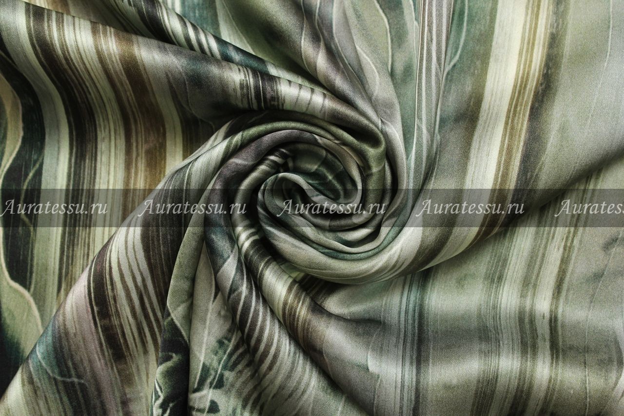 - Шелк-атлас Cadena, зелёно-оливковые полосы и волны