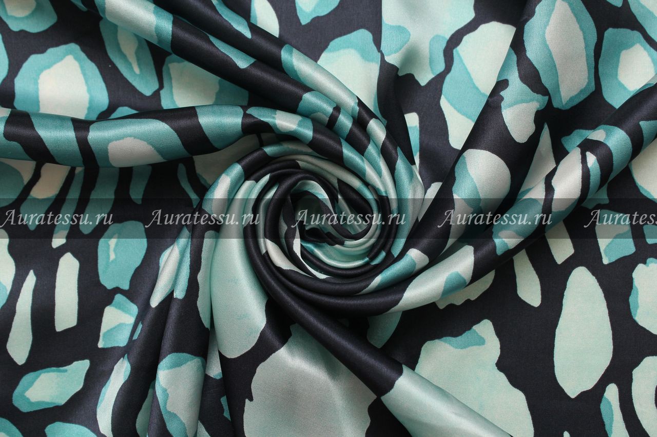 Шелк-атлас, бирюзовые пятна на тёмно-синем