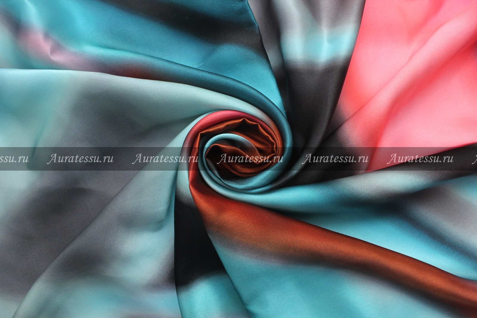 - Купон Giorgio Armani шёлк атлас бирюзово-серые с коралловым разводы Размер купона 136x135 см
