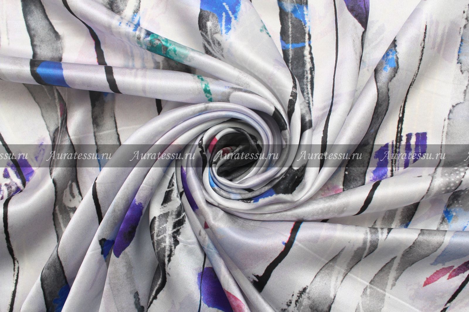 Дополнительная информация:Тонкий, но плотно сотканный шёлковый атлас бледного сиреневого цвета мраморного окраса. По полю ткани продольные полосы разной ширины графитового цвета. Полосы размытые, без чётких границ, так же не ровного окраса. Поверх полос яркие мазки не правильной формы. Ярко-синего, бирюзово-малахитового, фиолетового, розового цвета. Полотно нежное, пластичное с красивым шёлковым глянцем по лицевой стороне ткани. Подходит для пошива лёгкой летней одежды не узких силуэтов. Рекомендации по уходуОбщее правило от производителей для всех видов шелка и шелка в смеске с другими видами натуральных волокон- химчистка: даже если в рекомендациях стоит щадящая стирка,- Шелк нельзя отжимать в машинке и тем более в сушильном аппарате. При отжиме шелка аппаратным способом нарушается структура волокон и эффект непредсказуем. Возможна только сушка в расправленном состоянии или легкий отжим в полотенце. Шелк в смеске с другими натуральными или исусственными тканями - однозначно, химчистка, иначе ткань может "скрутить" из-за разноусадочности нитей. !!!!Из всех правил есть исключения. Смотри пункт №10 ПОДРОБНО ПО всем ВИДАМ ШЕЛКА: 1. Рекомендации по уходу: натуральный шелк – атлас, атлас-деворе (100% шёлк). Производители рекомендуют только сухую чистку. В особенности это касается шелкового атласа. Если хотите сохранить изделие в первозданном виде, то только химчистка. Нельзя при утюжке опрыскивать атласный шёлк так как могут остаться следы от воды. Утюжить с изнанки на сухую. Если хотите поэкспериментировать со своей тканью как она реагирует на стирку, то см. рекомендацию № 10 Производители рекомендуют только сухую чистку. Шифоны из натурального шелка можно стирать в режиме "Щадящая стирка" или "Стирка деликатных тканей" - без отжима, не замачивания, если они без нанесенного рельефного рисунка типа флока или с содержанием люрексовой нити. Для шифонов с флоком и люрексом рекомендации по уходу - сухая чистка. Если хотите поэкспериментировать со своей тканью, как она реагирует на стирку, то см. рекомендацию № 10. Наши эксперименты по стирке таких тканей дают в 70% положительный результат. Производители рекомендуют только сухую чистку. Если полотно без различного рода напыления и люрекса, то возможна стирка. Если хотите поэкспериментировать со своей тканью как она реагирует на стирку, то см. рекомендацию № 10. Для сложно обработанных шёлковых тканей, только сухая чистка. Производители рекомендуют только сухую чистку, так как после стирки ткань потеряет первоначальный лоск, перестанет держать форму. Рекомендации производителей - сухая чистка. Если хотите сохранить изделие в первозданном виде - только химчистка. Нельзя при утюжке опрыскивать водой, могут остаться пятна. Гладить с изнанки на сухую. Если хотите поэкспериментировать со своей тканью, то как она реагирует на стирку, то см. рекомендацию № 10 Рекомендации производителей - сухая чистка. После стирки напыление может деформироваться или осыпаться, люрекс- поблекнуть. Рекомендации всех Европейских производителей шелка, особенно с рисунком или вышивкой - химчистка. Шелковая тафта с вышивкой очень сложная в уходе, потому что как правило - вышивка производится вискозными или синтетическими нитями,а это значит , что при стирке они могут дать разную усадку. Гладить только сухим чистым 