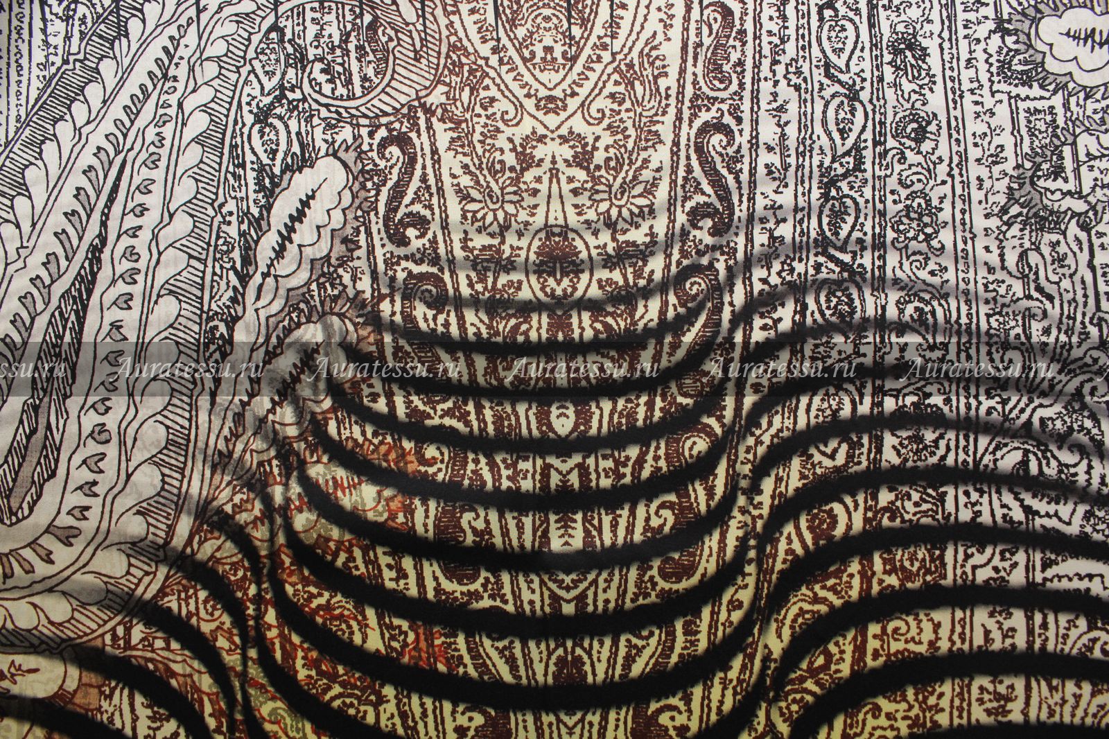 - Купон шёлк-атлас-стрейч Etro чёрные пики и волны по узору пейсли с каймой