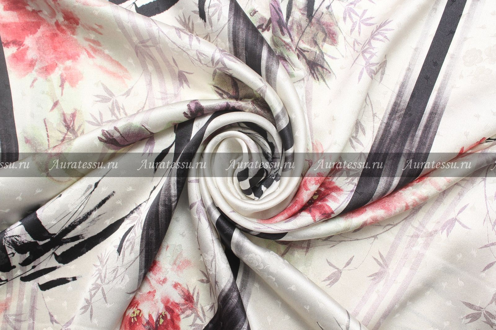 Дополнительная информация:Тонкий, нежный не прозрачный шёлк-жаккард с рисунком в японском стиле. Жаккардовый узор в виде мелких цветочков и пушинок одуванчика по всему полю ткани. Рисунок в виде полос черного и бледно-сливового цветов вдоль полотна. Весь чёрный рисунок ткани напоминает роспись тушью или написание иероглифов. Так же в узоре красивые коралловые цветы, бурые и фисташковые листочки, сливовые веточки и листики. Ткань очень красивая, эффектная. Подходит для пошива элегантной плательной и блузочной одежды не узких силуэтов. Рекомендации по уходуОбщее правило от производителей для всех видов шелка и шелка в смеске с другими видами натуральных волокон- химчистка: даже если в рекомендациях стоит щадящая стирка,- Шелк нельзя отжимать в машинке и тем более в сушильном аппарате. При отжиме шелка аппаратным способом нарушается структура волокон и эффект непредсказуем. Возможна только сушка в расправленном состоянии или легкий отжим в полотенце. Шелк в смеске с другими натуральными или исусственными тканями - однозначно, химчистка, иначе ткань может "скрутить" из-за разноусадочности нитей. !!!!Из всех правил есть исключения. Смотри пункт №10 ПОДРОБНО ПО всем ВИДАМ ШЕЛКА: 1. Рекомендации по уходу: натуральный шелк – атлас, атлас-деворе (100% шёлк). Производители рекомендуют только сухую чистку. В особенности это касается шелкового атласа. Если хотите сохранить изделие в первозданном виде, то только химчистка. Нельзя при утюжке опрыскивать атласный шёлк так как могут остаться следы от воды. Утюжить с изнанки на сухую. Если хотите поэкспериментировать со своей тканью как она реагирует на стирку, то см. рекомендацию № 10 Производители рекомендуют только сухую чистку. Шифоны из натурального шелка можно стирать в режиме "Щадящая стирка" или "Стирка деликатных тканей" - без отжима, не замачивания, если они без нанесенного рельефного рисунка типа флока или с содержанием люрексовой нити. Для шифонов с флоком и люрексом рекомендации по уходу - сухая чистка. Если хотите поэкспериментировать со своей тканью, как она реагирует на стирку, то см. рекомендацию № 10. Наши эксперименты по стирке таких тканей дают в 70% положительный результат. Производители рекомендуют только сухую чистку. Если полотно без различного рода напыления и люрекса, то возможна стирка. Если хотите поэкспериментировать со своей тканью как она реагирует на стирку, то см. рекомендацию № 10. Для сложно обработанных шёлковых тканей, только сухая чистка. Производители рекомендуют только сухую чистку, так как после стирки ткань потеряет первоначальный лоск, перестанет держать форму. Рекомендации производителей - сухая чистка. Если хотите сохранить изделие в первозданном виде - только химчистка. Нельзя при утюжке опрыскивать водой, могут остаться пятна. Гладить с изнанки на сухую. Если хотите поэкспериментировать со своей тканью, то как она реагирует на стирку, то см. рекомендацию № 10 Рекомендации производителей - сухая чистка. После стирки напыление может деформироваться или осыпаться, люрекс- поблекнуть. Рекомендации всех Европейских производителей шелка, особенно с рисунком или вышивкой - химчистка. Шелковая тафта с вышивкой очень сложная в уходе, потому что как правило - вышивка производится вискозными или синтетическими нитями,а это значит , что при стирке они могут д