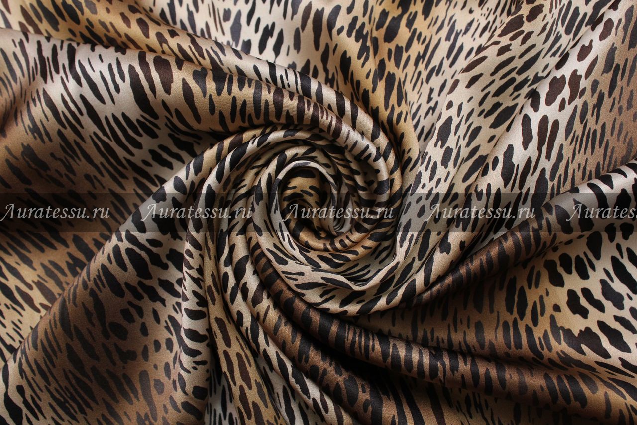 Дополнительная информация:Атласная шёлковая ткань с рисунком под леопард, мягкая и упругая с красивым благородным блеском. Ткань не тянется, атласное переплетение плотное, при механическом воздействии ткань не цепляется, нити не разъезжаются. Рисунок напоминает леопардовые пятнышки тёмно-коричневые (почти чёрные) на фоне цвета африканской саваны (от песочного до табачно-бежевого) полосами различного направления под батик. Ткань умеренной сминаемости, подходит для плательно-блузочного ассортимента. Рекомендации по уходуОбщее правило от производителей для всех видов шелка и шелка в смеске с другими видами натуральных волокон- химчистка: даже если в рекомендациях стоит щадящая стирка,- Шелк нельзя отжимать в машинке и тем более в сушильном аппарате. При отжиме шелка аппаратным способом нарушается структура волокон и эффект непредсказуем. Возможна только сушка в расправленном состоянии или легкий отжим в полотенце. Шелк в смеске с другими натуральными или исусственными тканями - однозначно, химчистка, иначе ткань может "скрутить" из-за разноусадочности нитей. !!!!Из всех правил есть исключения. Смотри пункт №10 ПОДРОБНО ПО всем ВИДАМ ШЕЛКА: 1. Рекомендации по уходу: натуральный шелк – атлас, атлас-деворе (100% шёлк). Производители рекомендуют только сухую чистку. В особенности это касается шелкового атласа. Если хотите сохранить изделие в первозданном виде, то только химчистка. Нельзя при утюжке опрыскивать атласный шёлк так как могут остаться следы от воды. Утюжить с изнанки на сухую. Если хотите поэкспериментировать со своей тканью как она реагирует на стирку, то см. рекомендацию № 10 Производители рекомендуют только сухую чистку. Шифоны из натурального шелка можно стирать в режиме "Щадящая стирка" или "Стирка деликатных тканей" - без отжима, не замачивания, если они без нанесенного рельефного рисунка типа флока или с содержанием люрексовой нити. Для шифонов с флоком и люрексом рекомендации по уходу - сухая чистка. Если хотите поэкспериментировать со своей тканью, как она реагирует на стирку, то см. рекомендацию № 10. Наши эксперименты по стирке таких тканей дают в 70% положительный результат. Производители рекомендуют только сухую чистку. Если полотно без различного рода напыления и люрекса, то возможна стирка. Если хотите поэкспериментировать со своей тканью как она реагирует на стирку, то см. рекомендацию № 10. Для сложно обработанных шёлковых тканей, только сухая чистка. Производители рекомендуют только сухую чистку, так как после стирки ткань потеряет первоначальный лоск, перестанет держать форму. Рекомендации производителей - сухая чистка. Если хотите сохранить изделие в первозданном виде - только химчистка. Нельзя при утюжке опрыскивать водой, могут остаться пятна. Гладить с изнанки на сухую. Если хотите поэкспериментировать со своей тканью, то как она реагирует на стирку, то см. рекомендацию № 10 Рекомендации производителей - сухая чистка. После стирки напыление может деформироваться или осыпаться, люрекс- поблекнуть. Рекомендации всех Европейских производителей шелка, особенно с рисунком или вышивкой - химчистка. Шелковая тафта с вышивкой очень сложная в уходе, потому что как правило - вышивка производится вискозными или синтетическими нитями,а это значит , что при стирке они могут дать разную усадку. Гладить только