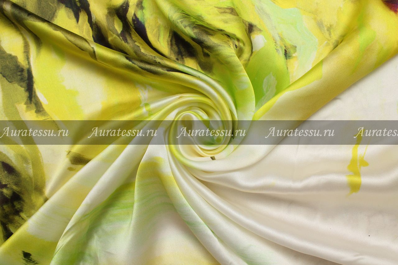 Дополнительная информация:Тонкий полупрозрачный шёлковый атлас, мягкий и пластичный с крупным рисунком розы расположенном в нижнем правом углу купона. Цветок ярко жёлто-зелёного цвета расположен снизу и с права, обрамлён коричневого цвета каймой. Узор напоминающий акварель на бело-молочном фоне, по которому в произвольном порядке попадаются цветные точечки. Полотно подходит для пошива лёгкой летней одежды свободных силуэтов. Рекомендации по уходуОбщее правило от производителей для всех видов шелка и шелка в смеске с другими видами натуральных волокон- химчистка: даже если в рекомендациях стоит щадящая стирка,- Шелк нельзя отжимать в машинке и тем более в сушильном аппарате. При отжиме шелка аппаратным способом нарушается структура волокон и эффект непредсказуем. Возможна только сушка в расправленном состоянии или легкий отжим в полотенце. Шелк в смеске с другими натуральными или исусственными тканями - однозначно, химчистка, иначе ткань может "скрутить" из-за разноусадочности нитей. !!!!Из всех правил есть исключения. Смотри пункт №10 ПОДРОБНО ПО всем ВИДАМ ШЕЛКА: 1. Рекомендации по уходу: натуральный шелк – атлас, атлас-деворе (100% шёлк). Производители рекомендуют только сухую чистку. В особенности это касается шелкового атласа. Если хотите сохранить изделие в первозданном виде, то только химчистка. Нельзя при утюжке опрыскивать атласный шёлк так как могут остаться следы от воды. Утюжить с изнанки на сухую. Если хотите поэкспериментировать со своей тканью как она реагирует на стирку, то см. рекомендацию № 10 Производители рекомендуют только сухую чистку. Шифоны из натурального шелка можно стирать в режиме "Щадящая стирка" или "Стирка деликатных тканей" - без отжима, не замачивания, если они без нанесенного рельефного рисунка типа флока или с содержанием люрексовой нити. Для шифонов с флоком и люрексом рекомендации по уходу - сухая чистка. Если хотите поэкспериментировать со своей тканью, как она реагирует на стирку, то см. рекомендацию № 10. Наши эксперименты по стирке таких тканей дают в 70% положительный результат. Производители рекомендуют только сухую чистку. Если полотно без различного рода напыления и люрекса, то возможна стирка. Если хотите поэкспериментировать со своей тканью как она реагирует на стирку, то см. рекомендацию № 10. Для сложно обработанных шёлковых тканей, только сухая чистка. Производители рекомендуют только сухую чистку, так как после стирки ткань потеряет первоначальный лоск, перестанет держать форму. Рекомендации производителей - сухая чистка. Если хотите сохранить изделие в первозданном виде - только химчистка. Нельзя при утюжке опрыскивать водой, могут остаться пятна. Гладить с изнанки на сухую. Если хотите поэкспериментировать со своей тканью, то как она реагирует на стирку, то см. рекомендацию № 10 Рекомендации производителей - сухая чистка. После стирки напыление может деформироваться или осыпаться, люрекс- поблекнуть. Рекомендации всех Европейских производителей шелка, особенно с рисунком или вышивкой - химчистка. Шелковая тафта с вышивкой очень сложная в уходе, потому что как правило - вышивка производится вискозными или синтетическими нитями,а это значит , что при стирке они могут дать разную усадку. Гладить только сухим чистым утюгом с изнанки в режиме "шелк". Ткань после стирки может пот