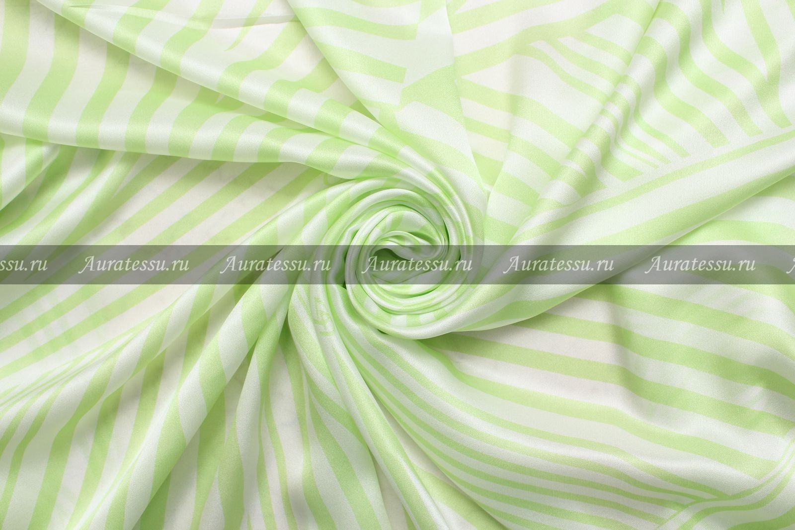 Шёлк-атлас молочно-салатовый узор ломаных линий