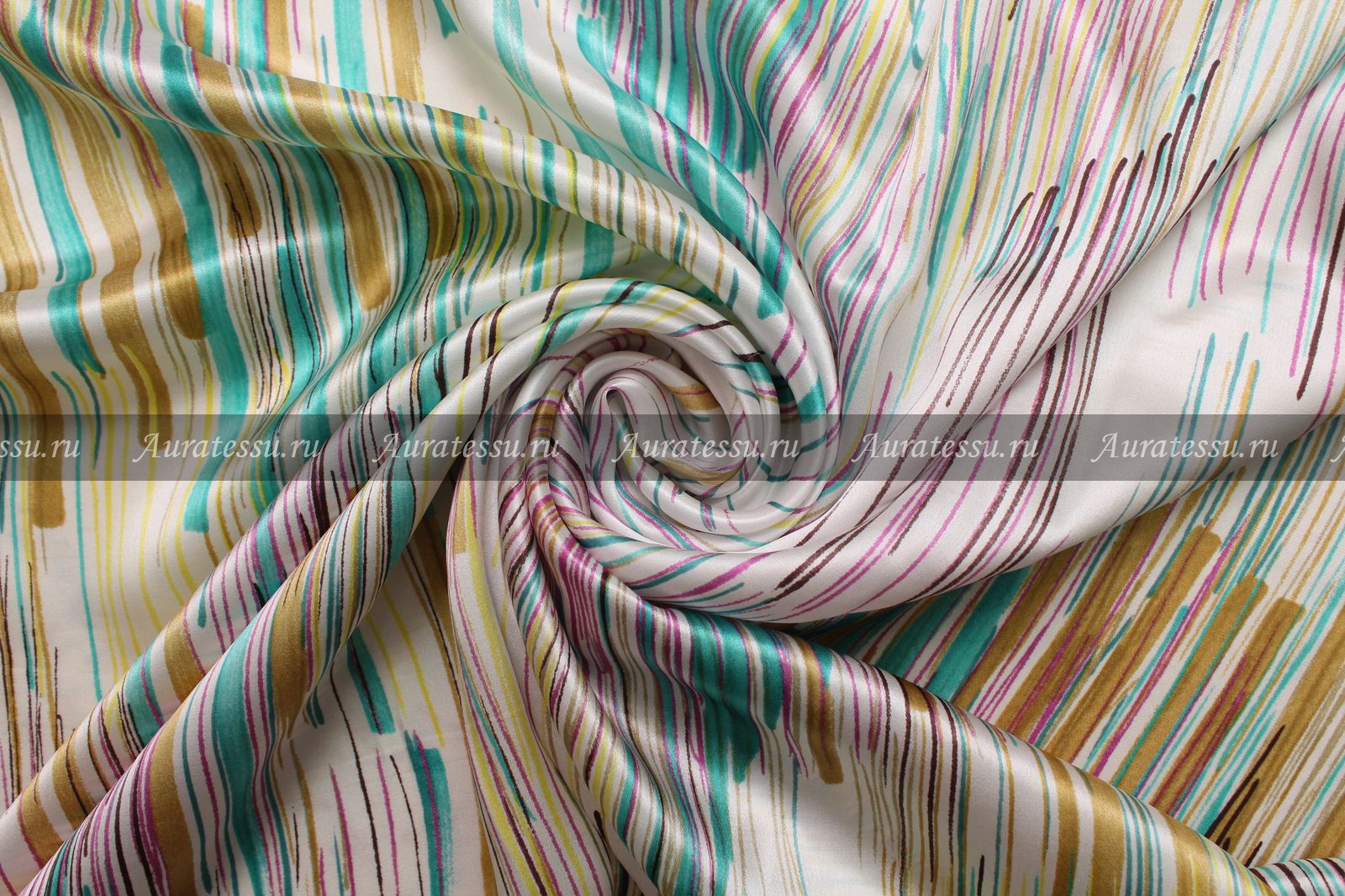 Дополнительная информация:Шёлковый атлас средней плотности, плотно сотканный, очень пластичный, красиво драпируется, в меру упругий. На молочно-белом поле различной толщины и цвета штрихи-полоски. Цвета яркие. Преобладают оливковый, зелёный-бриллиантовый, фуксия, лимонно-жёлтый, коричневый. Полоски продольные, разной длины и интенсивности цвета. Подходит для пошива плательно-блузочной одежды, разнообразных моделей, прямых и объёмных силуэтов. Рекомендации по уходуОбщее правило от производителей для всех видов шелка и шелка в смеске с другими видами натуральных волокон- химчистка: даже если в рекомендациях стоит щадящая стирка,- Шелк нельзя отжимать в машинке и тем более в сушильном аппарате. При отжиме шелка аппаратным способом нарушается структура волокон и эффект непредсказуем. Возможна только сушка в расправленном состоянии или легкий отжим в полотенце. Шелк в смеске с другими натуральными или исусственными тканями - однозначно, химчистка, иначе ткань может "скрутить" из-за разноусадочности нитей. !!!!Из всех правил есть исключения. Смотри пункт №10 ПОДРОБНО ПО всем ВИДАМ ШЕЛКА: 1. Рекомендации по уходу: натуральный шелк – атлас, атлас-деворе (100% шёлк). Производители рекомендуют только сухую чистку. В особенности это касается шелкового атласа. Если хотите сохранить изделие в первозданном виде, то только химчистка. Нельзя при утюжке опрыскивать атласный шёлк так как могут остаться следы от воды. Утюжить с изнанки на сухую. Если хотите поэкспериментировать со своей тканью как она реагирует на стирку, то см. рекомендацию № 10 Производители рекомендуют только сухую чистку. Шифоны из натурального шелка можно стирать в режиме "Щадящая стирка" или "Стирка деликатных тканей" - без отжима, не замачивания, если они без нанесенного рельефного рисунка типа флока или с содержанием люрексовой нити. Для шифонов с флоком и люрексом рекомендации по уходу - сухая чистка. Если хотите поэкспериментировать со своей тканью, как она реагирует на стирку, то см. рекомендацию № 10. Наши эксперименты по стирке таких тканей дают в 70% положительный результат. Производители рекомендуют только сухую чистку. Если полотно без различного рода напыления и люрекса, то возможна стирка. Если хотите поэкспериментировать со своей тканью как она реагирует на стирку, то см. рекомендацию № 10. Для сложно обработанных шёлковых тканей, только сухая чистка. Производители рекомендуют только сухую чистку, так как после стирки ткань потеряет первоначальный лоск, перестанет держать форму. Рекомендации производителей - сухая чистка. Если хотите сохранить изделие в первозданном виде - только химчистка. Нельзя при утюжке опрыскивать водой, могут остаться пятна. Гладить с изнанки на сухую. Если хотите поэкспериментировать со своей тканью, то как она реагирует на стирку, то см. рекомендацию № 10 Рекомендации производителей - сухая чистка. После стирки напыление может деформироваться или осыпаться, люрекс- поблекнуть. Рекомендации всех Европейских производителей шелка, особенно с рисунком или вышивкой - химчистка. Шелковая тафта с вышивкой очень сложная в уходе, потому что как правило - вышивка производится вискозными или синтетическими нитями,а это значит , что при стирке они могут дать разную усадку. Гладить только сухим чистым утюгом с изнанки в режиме "шелк". Ткань после с