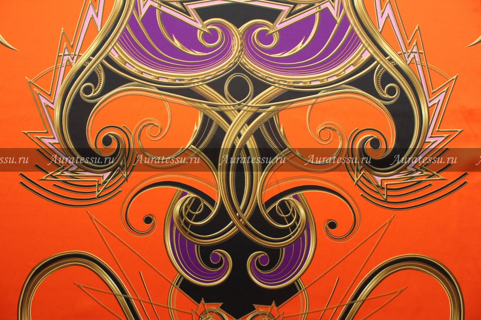 - Купон шёлк-атлас Versace с зеркальным оранжево-фиолетовым узором. Размер купона 134х110 см.