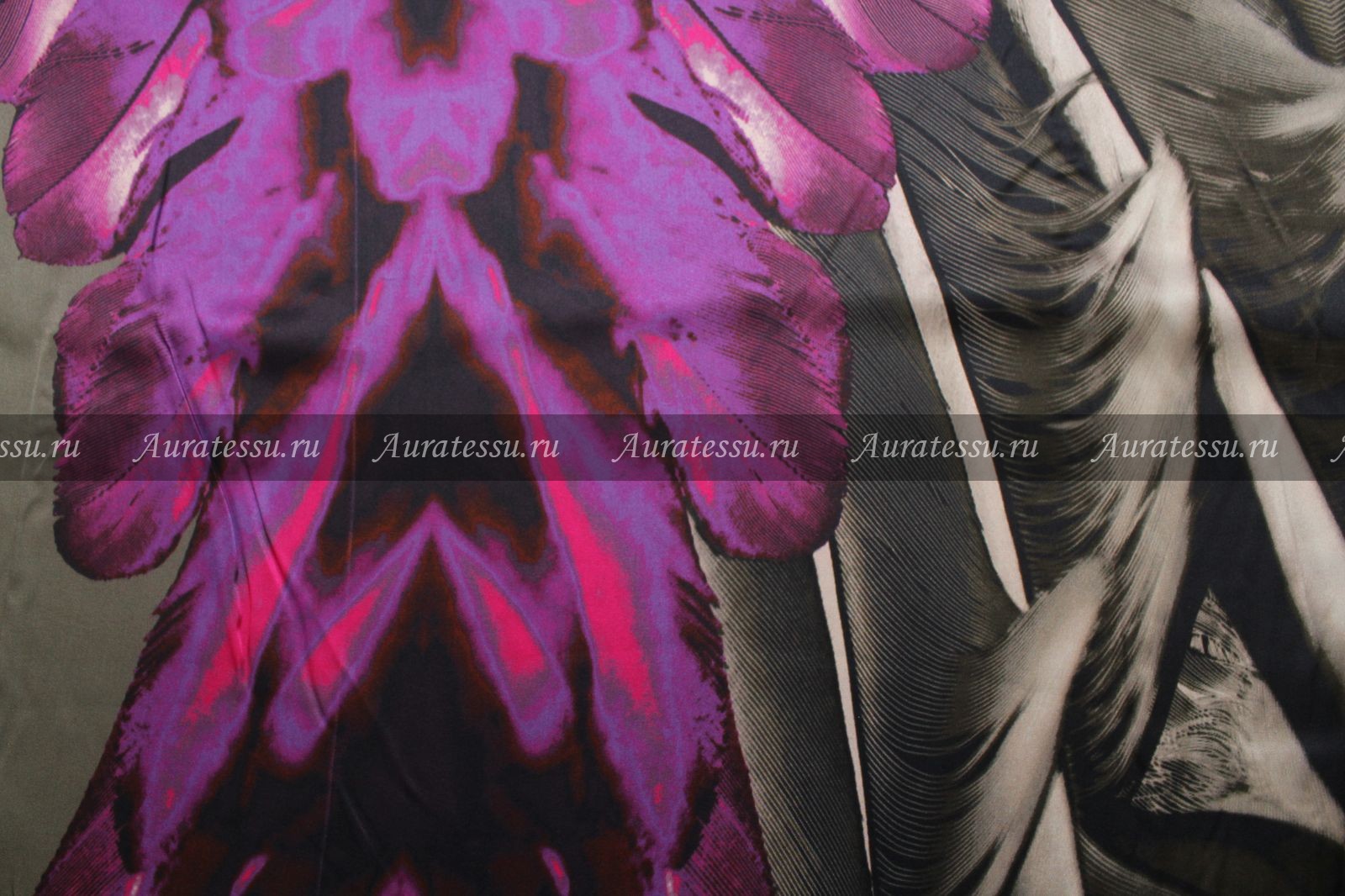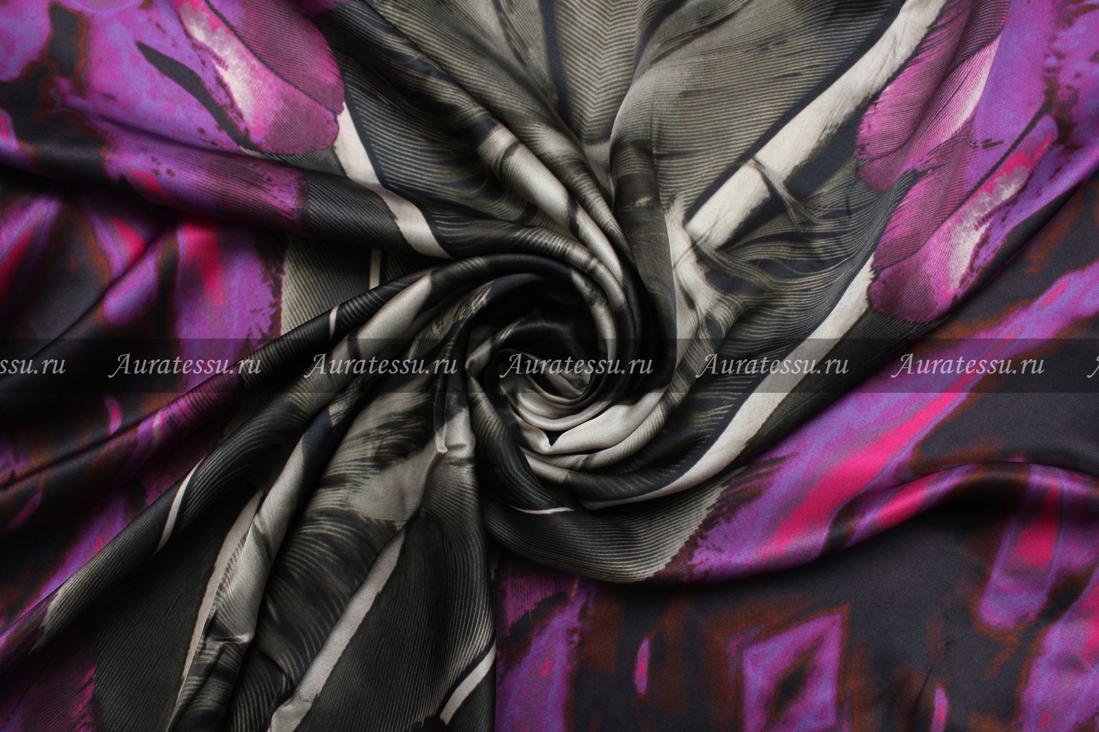 - Купон шёлк-атлас PRADA зеркальный узор в пурпурных, серо-оливковых, графитовых тонах