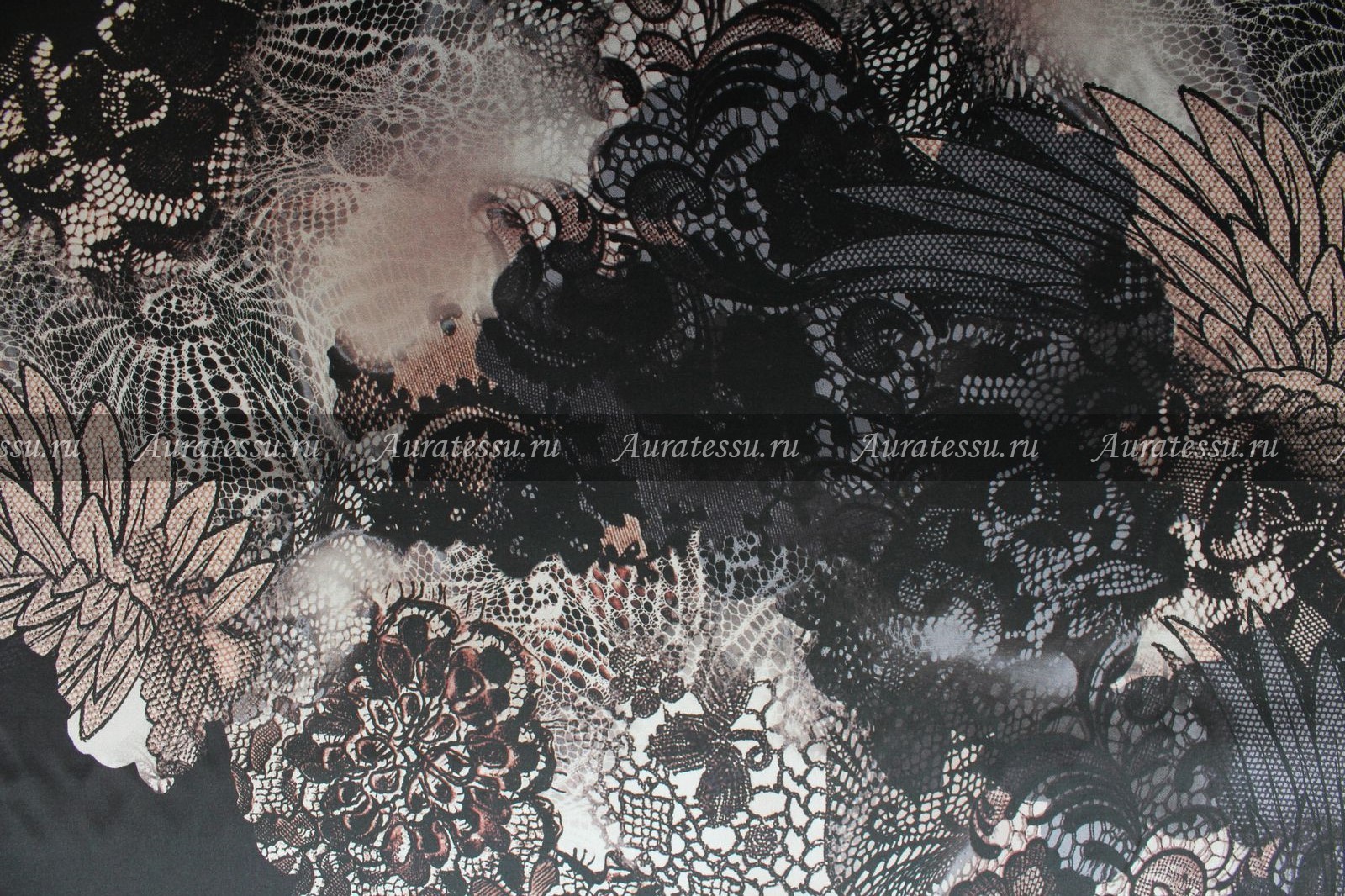 - Атлас-шёлк R.Cavalli в графитовом цвете с бежевым, серым, коричневым кружевным рисунком