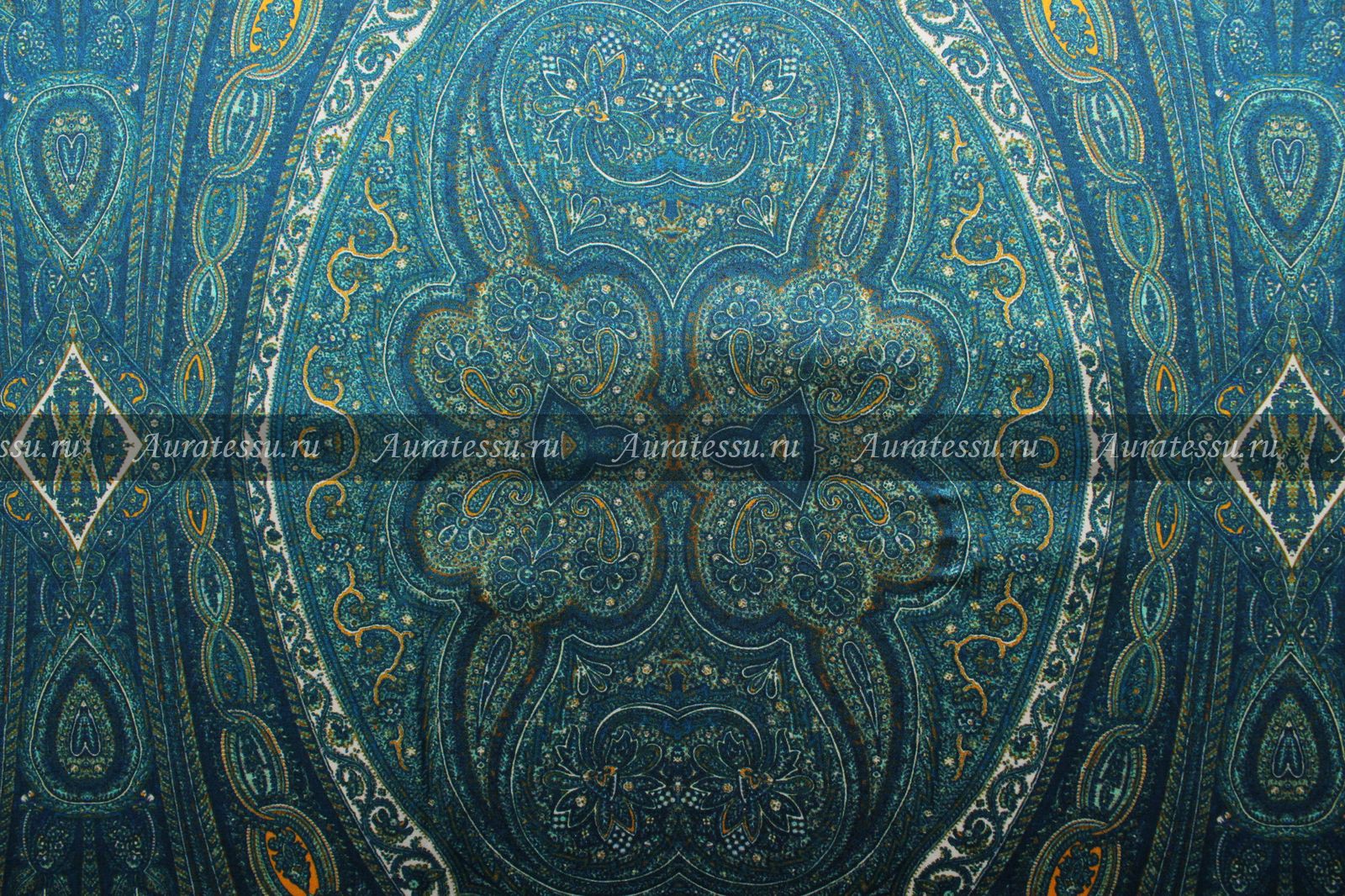 - Шёлк-атлас-стрейч Etro восточный орнамент в сине-зелёных тонах