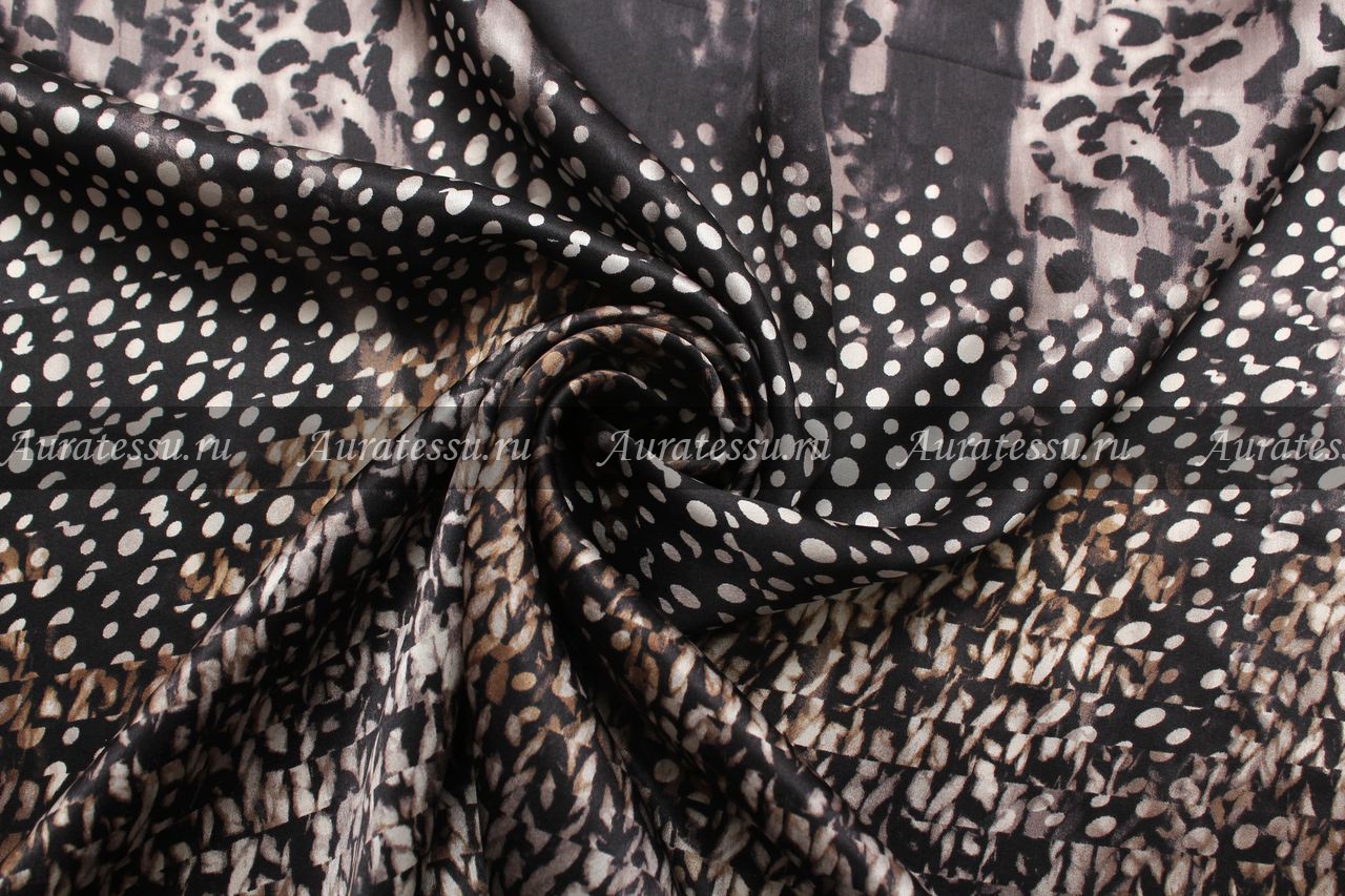 Шелк-атлас горох и хищный рисунок в чёрном и бежево-табачном цвете