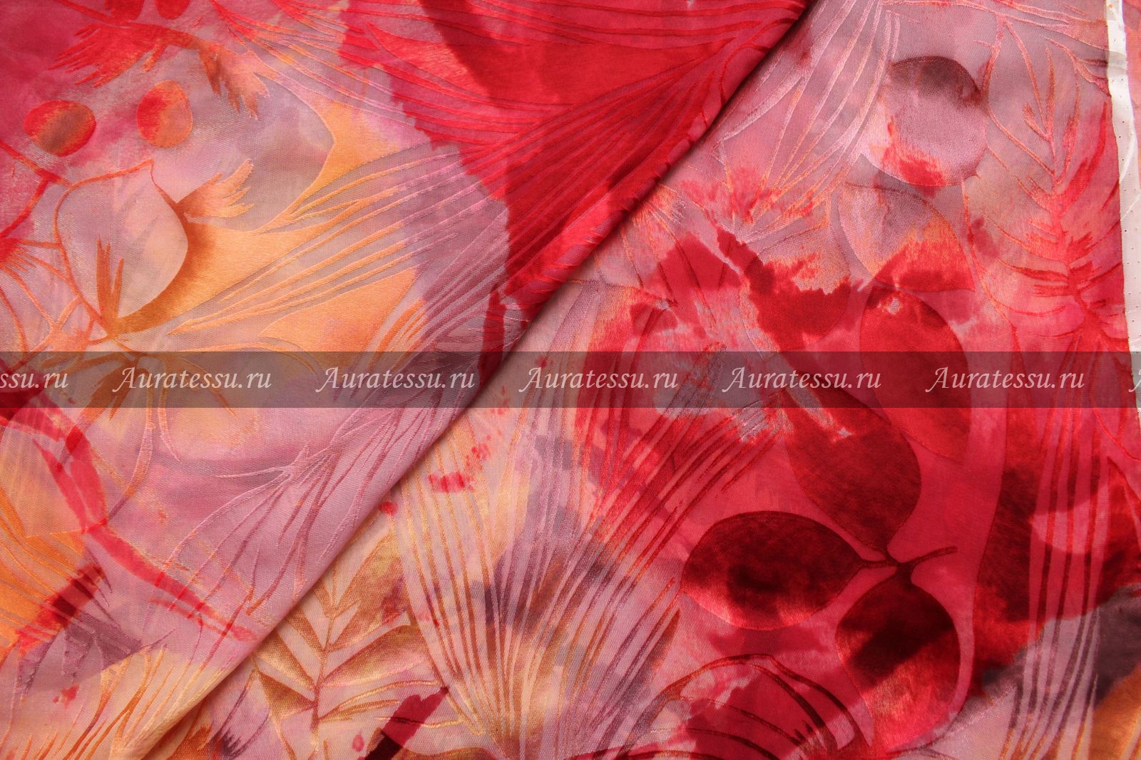 Дополнительная информация:В основе ткани лежит 100% шелк, а верхний слой рисунка состоит из вискозы. Деворе изготавливается методом вытравливания верхнего (вискозного) слоя двухслойной ткани, состоящей из шелка и вискозы по задуманному рисунку и в этих местах остается только шелковый шифон. Рисунок атласа растительный с контурами цветов и листьев раскрашенных в красно-персиковые тона по принципу батика с добавлением лёгких лиловых акцентов. Шелк-деворе всегда очень нарядно выглядит, подходит для шитья праздничных платьев, блуз, накидок. Рекомендации по уходуОбщее правило от производителей для всех видов шелка и шелка в смеске с другими видами натуральных волокон- химчистка: даже если в рекомендациях стоит щадящая стирка,- Шелк нельзя отжимать в машинке и тем более в сушильном аппарате. При отжиме шелка аппаратным способом нарушается структура волокон и эффект непредсказуем. Возможна только сушка в расправленном состоянии или легкий отжим в полотенце. Шелк в смеске с другими натуральными или исусственными тканями - однозначно, химчистка, иначе ткань может "скрутить" из-за разноусадочности нитей. !!!!Из всех правил есть исключения. Смотри пункт №10 ПОДРОБНО ПО всем ВИДАМ ШЕЛКА: 1. Рекомендации по уходу: натуральный шелк – атлас, атлас-деворе (100% шёлк). Производители рекомендуют только сухую чистку. В особенности это касается шелкового атласа. Если хотите сохранить изделие в первозданном виде, то только химчистка. Нельзя при утюжке опрыскивать атласный шёлк так как могут остаться следы от воды. Утюжить с изнанки на сухую. Если хотите поэкспериментировать со своей тканью как она реагирует на стирку, то см. рекомендацию № 10 Производители рекомендуют только сухую чистку. Шифоны из натурального шелка можно стирать в режиме "Щадящая стирка" или "Стирка деликатных тканей" - без отжима, не замачивания, если они без нанесенного рельефного рисунка типа флока или с содержанием люрексовой нити. Для шифонов с флоком и люрексом рекомендации по уходу - сухая чистка. Если хотите поэкспериментировать со своей тканью, как она реагирует на стирку, то см. рекомендацию № 10. Наши эксперименты по стирке таких тканей дают в 70% положительный результат. Производители рекомендуют только сухую чистку. Если полотно без различного рода напыления и люрекса, то возможна стирка. Если хотите поэкспериментировать со своей тканью как она реагирует на стирку, то см. рекомендацию № 10. Для сложно обработанных шёлковых тканей, только сухая чистка. Производители рекомендуют только сухую чистку, так как после стирки ткань потеряет первоначальный лоск, перестанет держать форму. Рекомендации производителей - сухая чистка. Если хотите сохранить изделие в первозданном виде - только химчистка. Нельзя при утюжке опрыскивать водой, могут остаться пятна. Гладить с изнанки на сухую. Если хотите поэкспериментировать со своей тканью, то как она реагирует на стирку, то см. рекомендацию № 10 Рекомендации производителей - сухая чистка. После стирки напыление может деформироваться или осыпаться, люрекс- поблекнуть. Рекомендации всех Европейских производителей шелка, особенно с рисунком или вышивкой - химчистка. Шелковая тафта с вышивкой очень сложная в уходе, потому что как правило - вышивка производится вискозными или синтетическими нитями,а это значит , что при стирке они могу