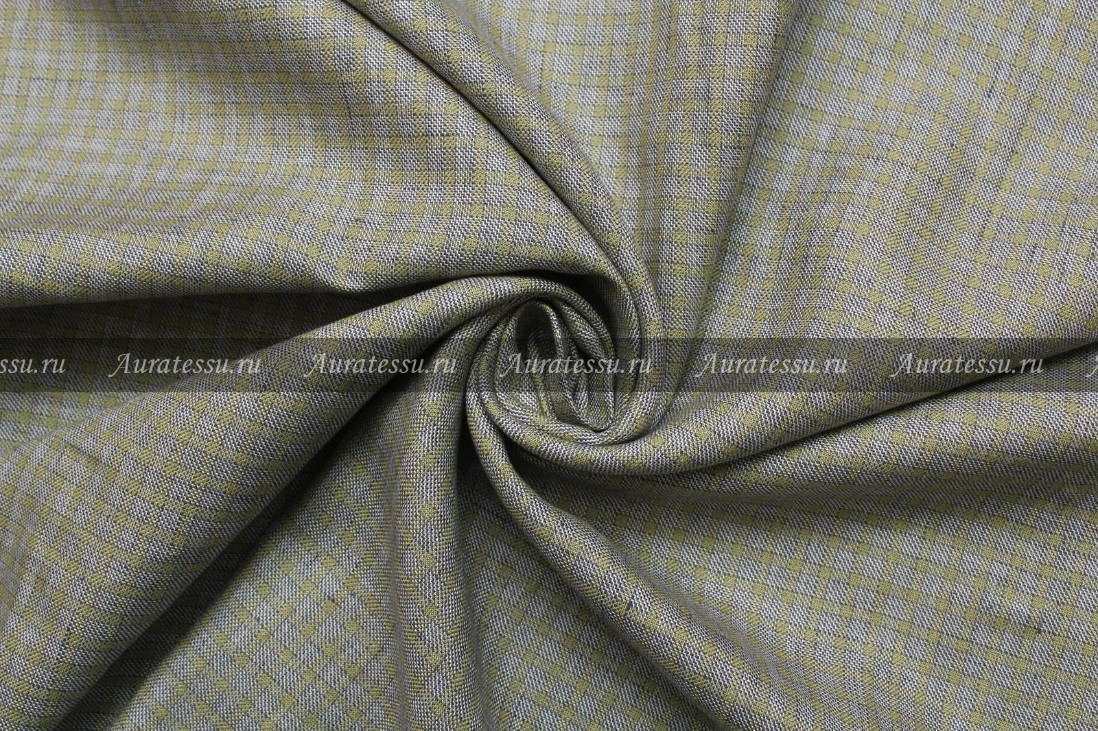 Шёлк костюмный серо-фисташковый в клетку
