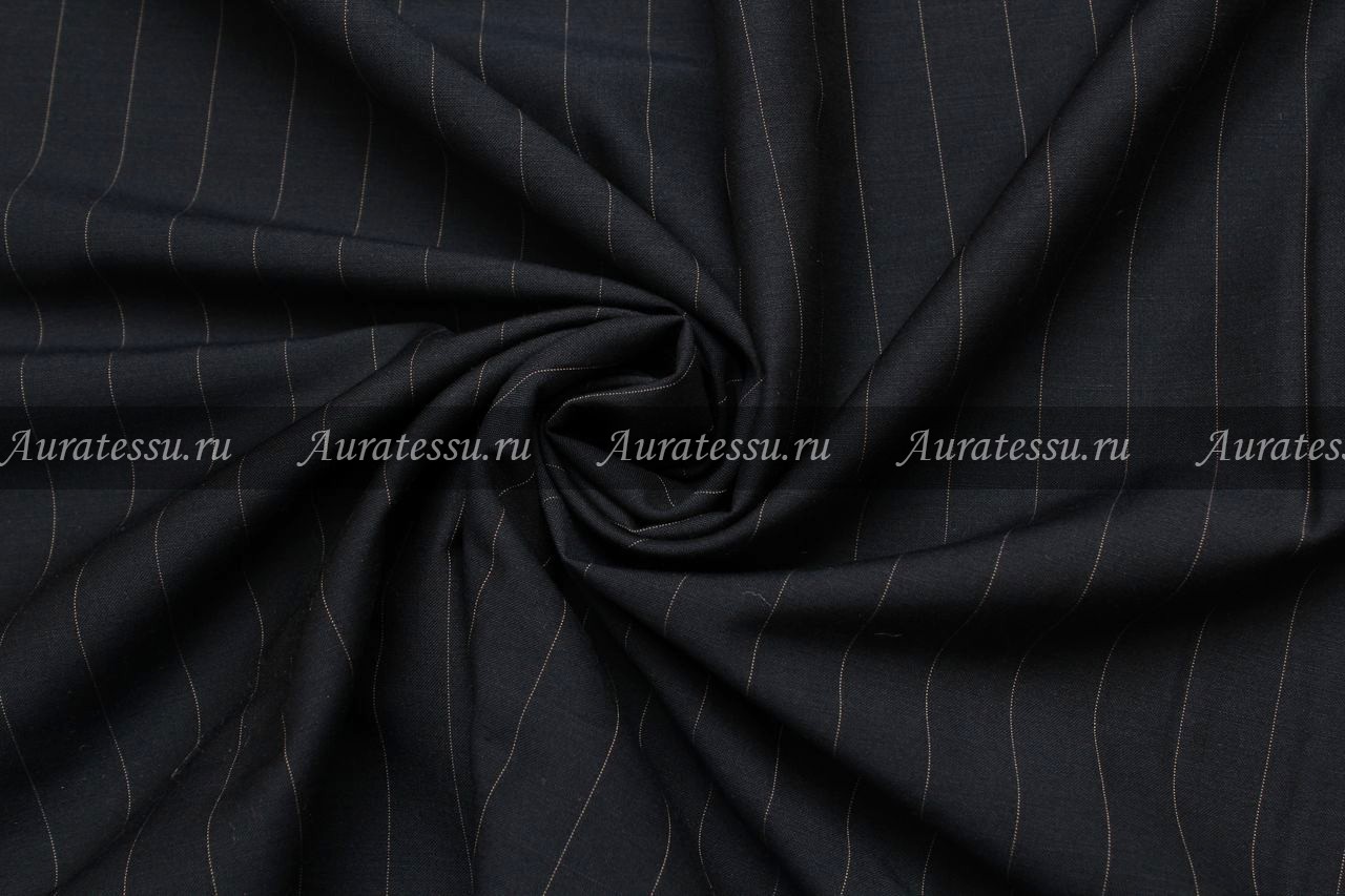 Шелк костюмный тёмно-синий, в бежевую полоску