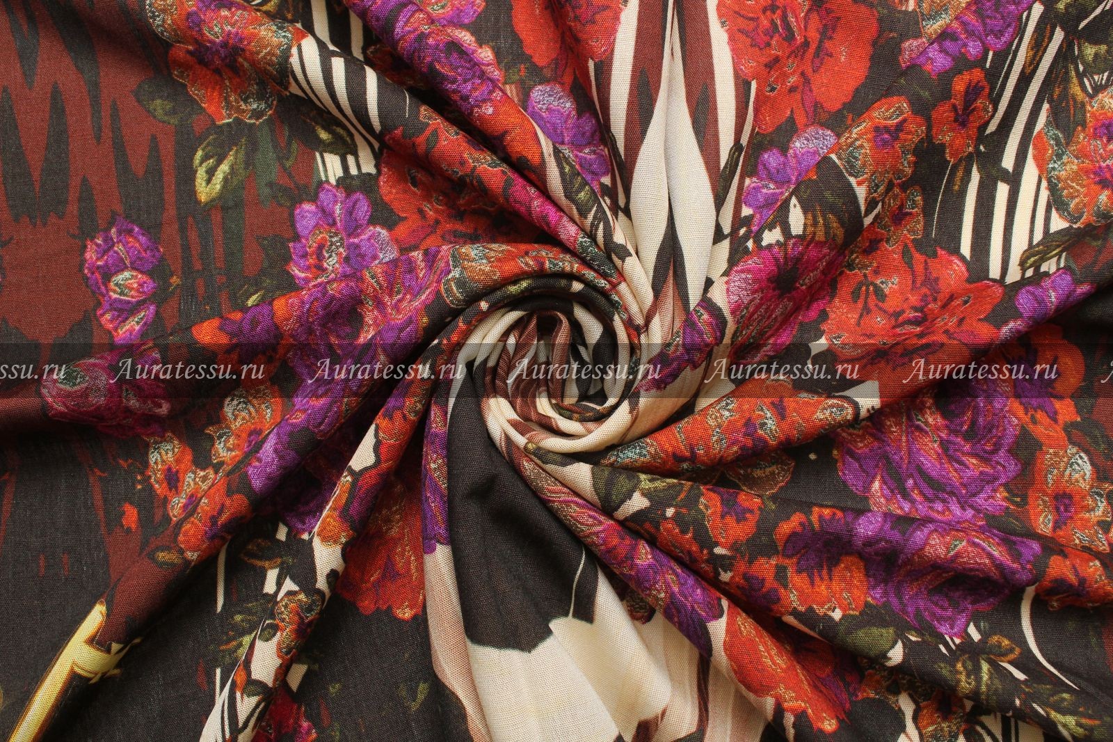 Дополнительная информация:Тонкая костюмно-плательная ткань, полотняного переплетения с крупным рисунком. На ткани по всему бежево-коричневому полю цветочно-растительный узор в пурпурно-терракотовом, вишнёвом цвете. По низу купона две полосы из маленьких золотистых ключей. Полотно держит форму, матовое, пластичное. Подходит для пошива плательной и лёгкой костюмной одежды классических силуэтов. Рекомендации по уходуОбщее правило от производителей для всех видов шелка и шелка в смеске с другими видами натуральных волокон- химчистка: даже если в рекомендациях стоит щадящая стирка,- Шелк нельзя отжимать в машинке и тем более в сушильном аппарате. При отжиме шелка аппаратным способом нарушается структура волокон и эффект непредсказуем. Возможна только сушка в расправленном состоянии или легкий отжим в полотенце. Шелк в смеске с другими натуральными или исусственными тканями - однозначно, химчистка, иначе ткань может "скрутить" из-за разноусадочности нитей. !!!!Из всех правил есть исключения. Смотри пункт №10 ПОДРОБНО ПО всем ВИДАМ ШЕЛКА: 1. Рекомендации по уходу: натуральный шелк – атлас, атлас-деворе (100% шёлк). Производители рекомендуют только сухую чистку. В особенности это касается шелкового атласа. Если хотите сохранить изделие в первозданном виде, то только химчистка. Нельзя при утюжке опрыскивать атласный шёлк так как могут остаться следы от воды. Утюжить с изнанки на сухую. Если хотите поэкспериментировать со своей тканью как она реагирует на стирку, то см. рекомендацию № 10 Производители рекомендуют только сухую чистку. Шифоны из натурального шелка можно стирать в режиме "Щадящая стирка" или "Стирка деликатных тканей" - без отжима, не замачивания, если они без нанесенного рельефного рисунка типа флока или с содержанием люрексовой нити. Для шифонов с флоком и люрексом рекомендации по уходу - сухая чистка. Если хотите поэкспериментировать со своей тканью, как она реагирует на стирку, то см. рекомендацию № 10. Наши эксперименты по стирке таких тканей дают в 70% положительный результат. Производители рекомендуют только сухую чистку. Если полотно без различного рода напыления и люрекса, то возможна стирка. Если хотите поэкспериментировать со своей тканью как она реагирует на стирку, то см. рекомендацию № 10. Для сложно обработанных шёлковых тканей, только сухая чистка. Производители рекомендуют только сухую чистку, так как после стирки ткань потеряет первоначальный лоск, перестанет держать форму. Рекомендации производителей - сухая чистка. Если хотите сохранить изделие в первозданном виде - только химчистка. Нельзя при утюжке опрыскивать водой, могут остаться пятна. Гладить с изнанки на сухую. Если хотите поэкспериментировать со своей тканью, то как она реагирует на стирку, то см. рекомендацию № 10 Рекомендации производителей - сухая чистка. После стирки напыление может деформироваться или осыпаться, люрекс- поблекнуть. Рекомендации всех Европейских производителей шелка, особенно с рисунком или вышивкой - химчистка. Шелковая тафта с вышивкой очень сложная в уходе, потому что как правило - вышивка производится вискозными или синтетическими нитями,а это значит , что при стирке они могут дать разную усадку. Гладить только сухим чистым утюгом с изнанки в режиме "шелк". Ткань после стирки может потерять дорогой лоск. Поэтому, конкр