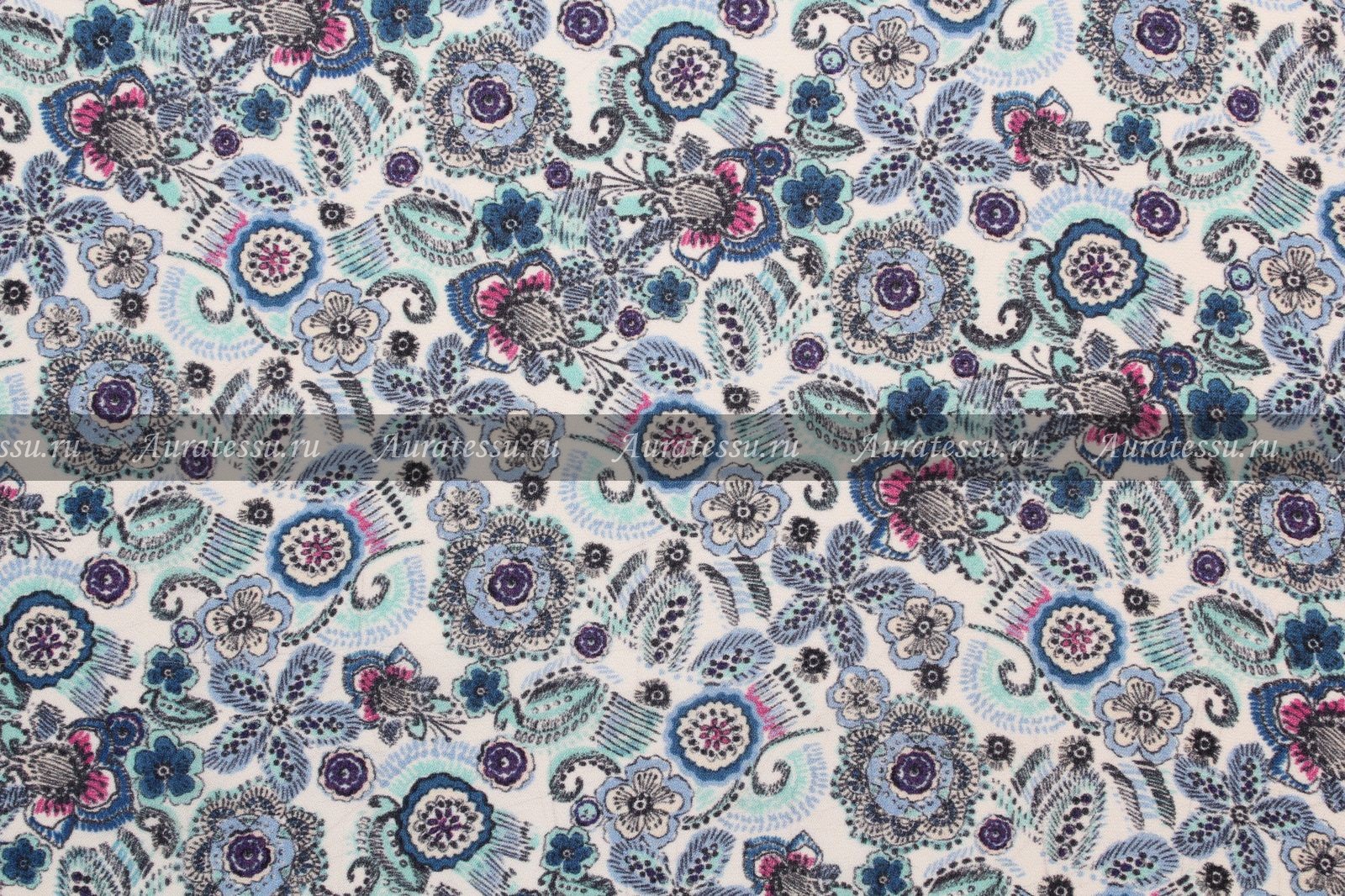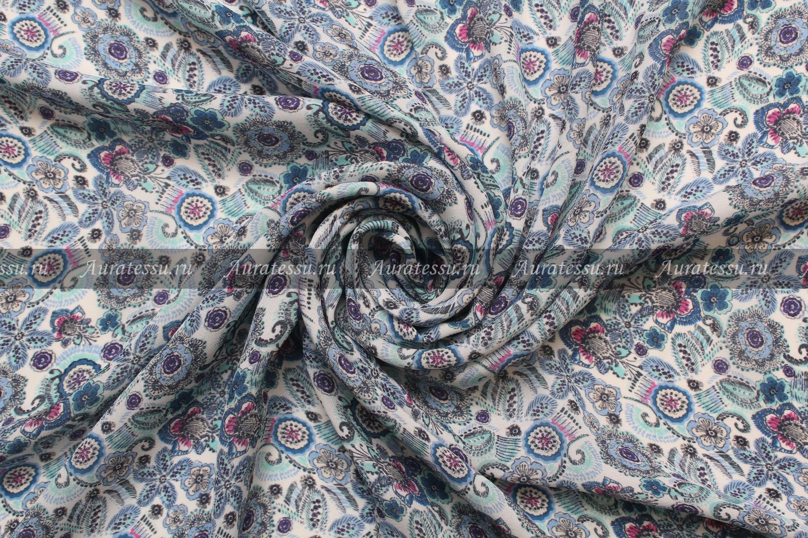 Шёлк-креп с мелким цветочным рисунком на белом фоне